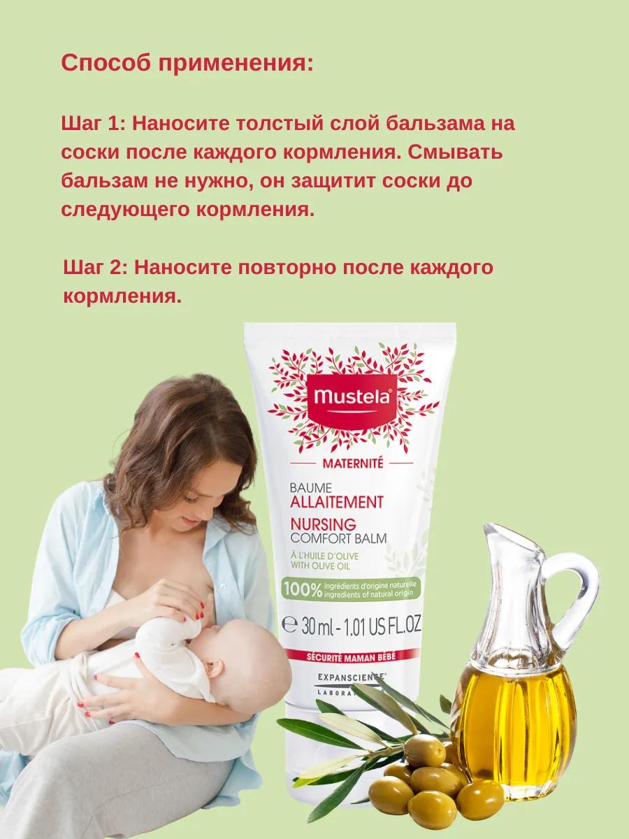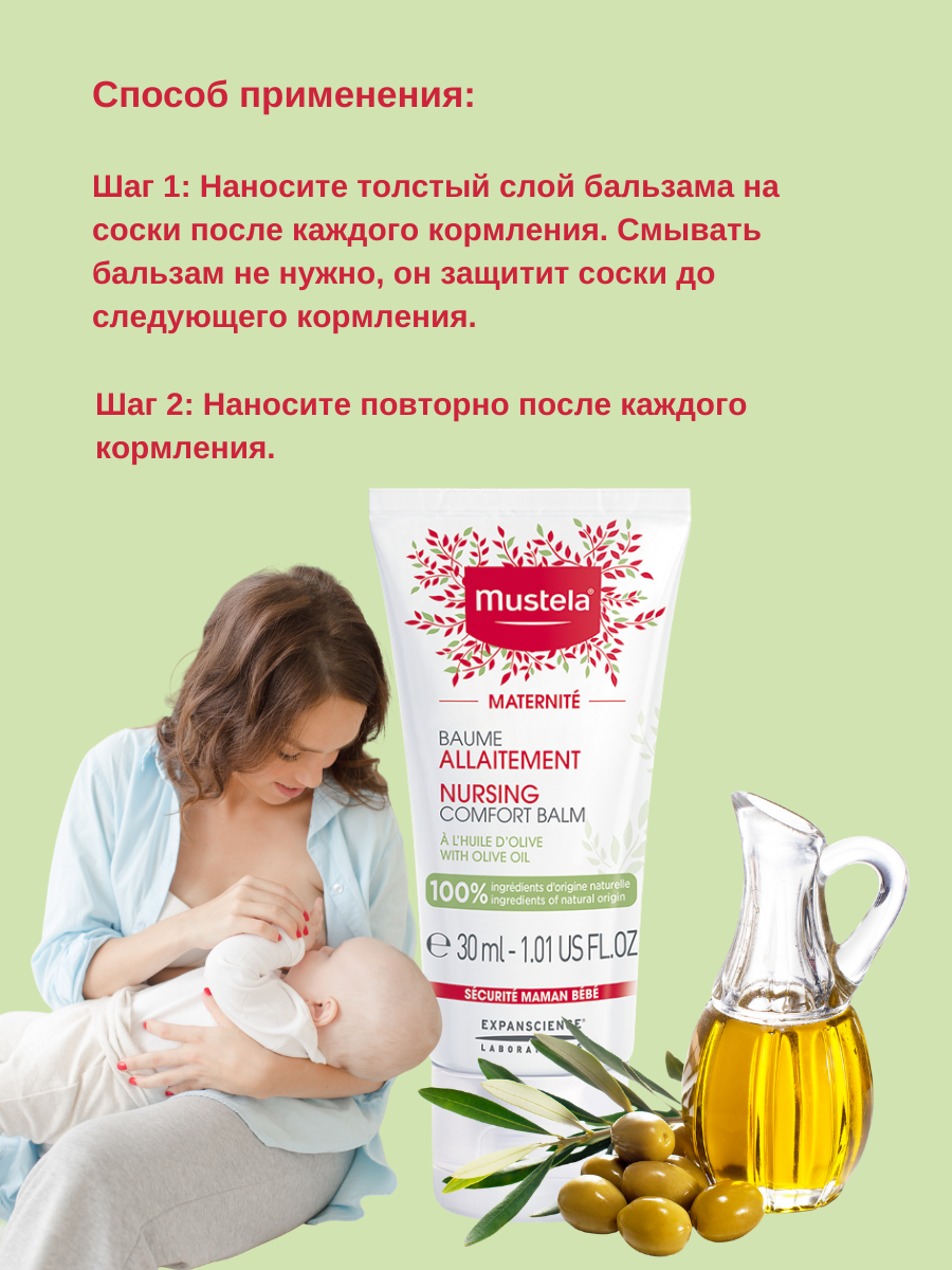 Наносите обильный слой на соски после каждого кормления. Смывать бальзам не нужно — он будет защищать соски до следующего кормления.