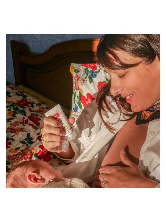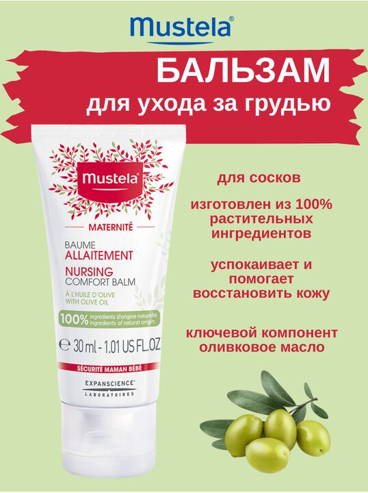 Формирует защитный увлажняющий барьер и оказывает восстанавливающее действие на потрескавшиеся или чувствительные соски, сохраняя кожу комфортной во время кормления.