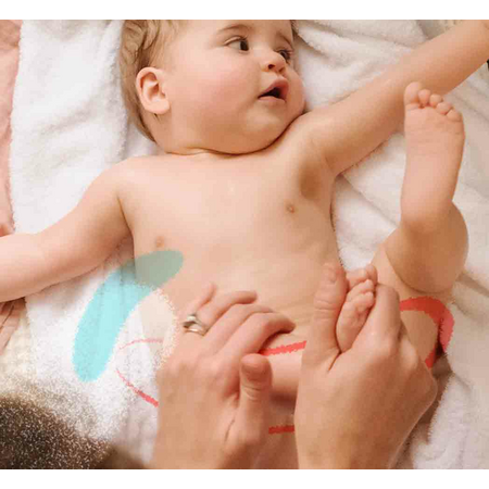 Масло нанести на ладони и массирующими движениями распределить по коже малыша.