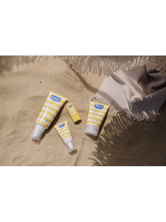 - Нанесите увлажняющий крем (например, Mustela для лица или тела).