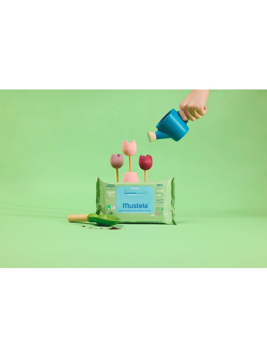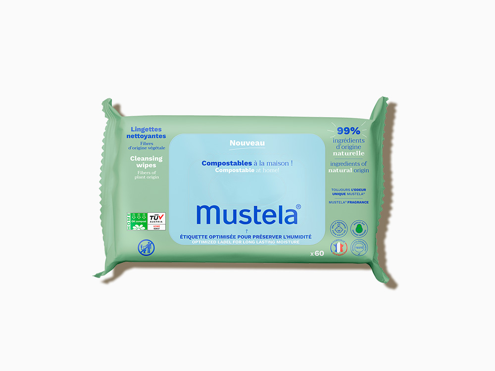 Влажные салфетки Mustela в дозаторе по 60 штук бережно очищают и успокаивают кожу малыша.