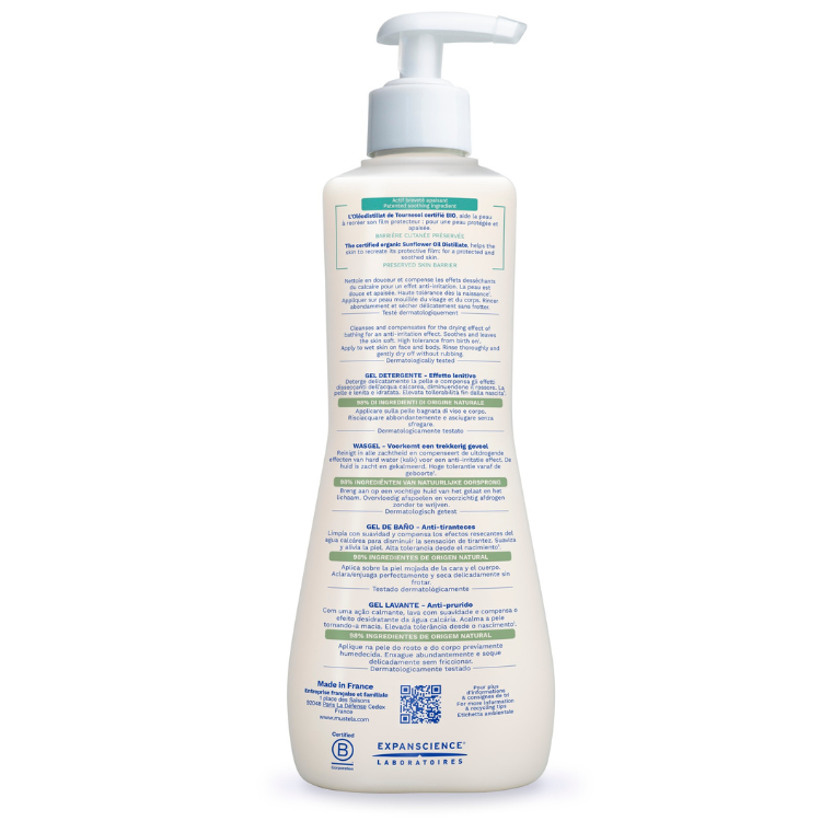 Гель бережно очищает кожу, защищая ее от высушивающего действия жесткой воды, укрепляет кожный барьер и обладает смягчающим действием