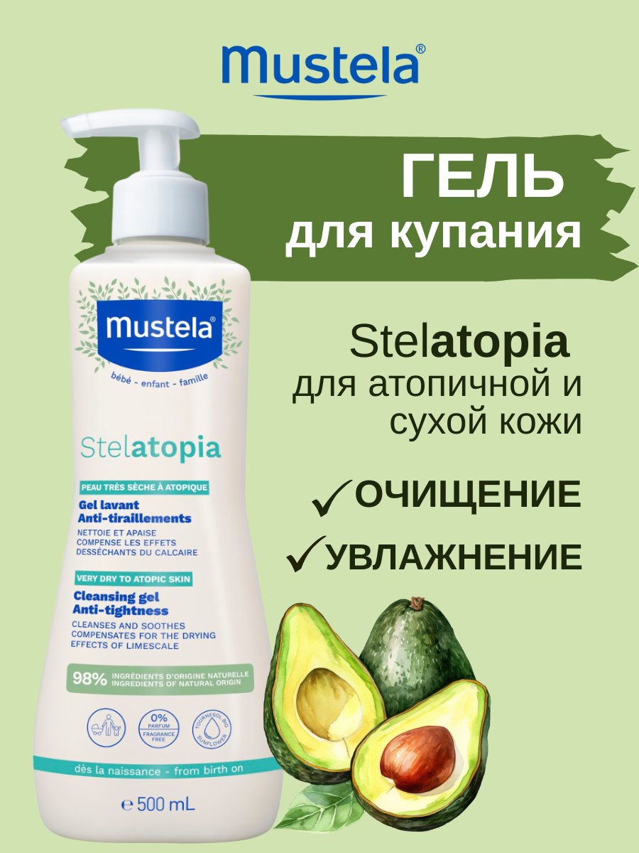 Mustela Stelatopia Cleansing Gel подходит для использования с рождения. Он помогает уменьшить ощущение сухости кожи и смягчает жесткую воду, мягко очищая волосы и кожу вашего малыша. Обеспечивает необходимый уход за кожей новорожденных и детей с очень сухой или атопичной кожей.