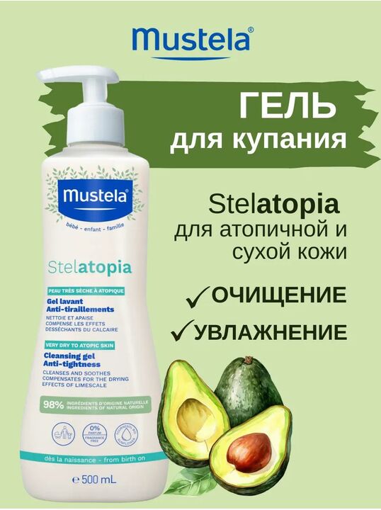 - Здравствуйте! Спасибо за ваш отзыв! Mustela Stelatopia гель для купания очищающий 500 мл — отличный выбор при экземе и очень сухой, атопичной коже: мягко очищает без мыла и агрессивных ПАВ, не пересушивает, сохраняет защитный барьер, оставляет кожу мягкой и комфортной после использования. Без запаха, гипоаллергенная формула, подходит даже для ежедневного применения. Здоровья Вам!
