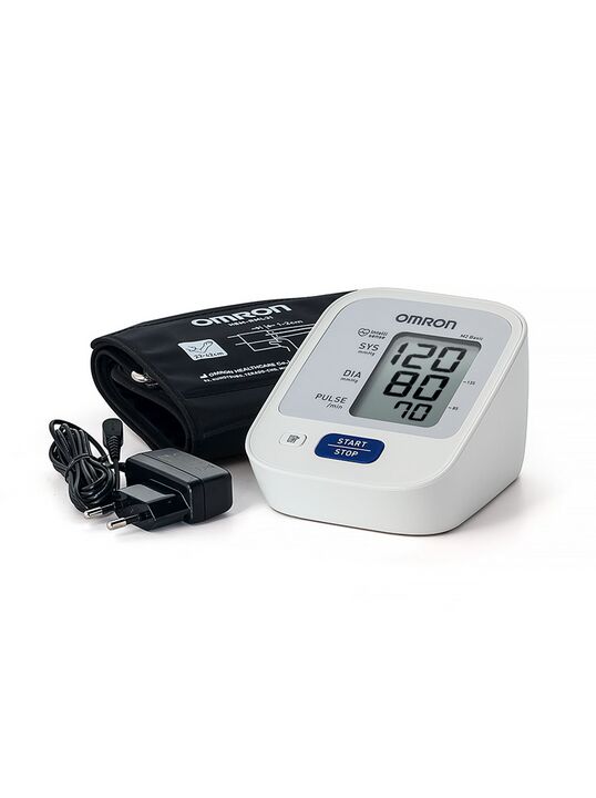 Модель измерителя артериального давления Omron M2 Basic с адаптером обладает всеми характеристиками модели Omron M2 Basic, а именно крупным трехстрочным жидкокристаллическим экраном, функцией памяти данных на 30 последних результатов измерения, графическим индикатором уровня артериального давления, индикатором аритмии и компрессионной манжетой Omron CM с обхватом плеча 22 - 32 см., но помимо набора батареек для питания прибора, в комплект также входит сетевой адаптер Omron S для питания от электросети.