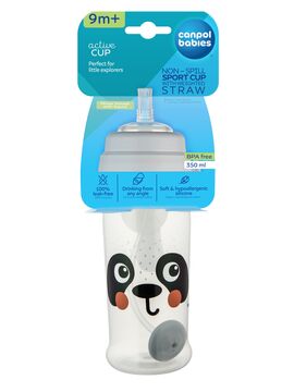 Canpol поильник непроливающийся 270мл с трубочкой и утяжелителем BabiesBoo панда 56/617_whi