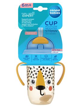 Canpol поильник непроливающийся 270мл с трубочкой и утяжелителем BabiesBoo гепард 56/617_ora