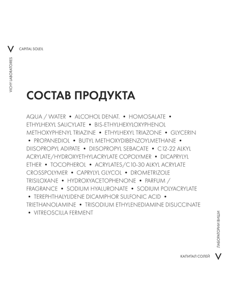butane, aqua/water, homosalate, dicaprylyl ether, octocrylene, glycerin,ethylhexyl salicylate, dimethicone, butyl methoxydibenzoylmethane, styrene/acrylates copolymer,drometrizole trisiloxane, peg-30 dipolyhydroxystearate, nylon-12, dicaprylyl carbonate, methylmethacrylate crosspolymer, cyclohexasiloxane, polymethylsilsesquioxane, p-anisic acid, caprylyl glycol,disodium edta, disteardimonium hectorite, dodecene, ethylhexyl triazone,isododecane, lauryl peg/ppg-18/18 methicone, peg-8 laurate, phenoxyethanol,poloxamer 407, poly c10-30 alkyl acrylate, propylene carbonate, sodium chloride,tocopherol, parfum/fragrance.