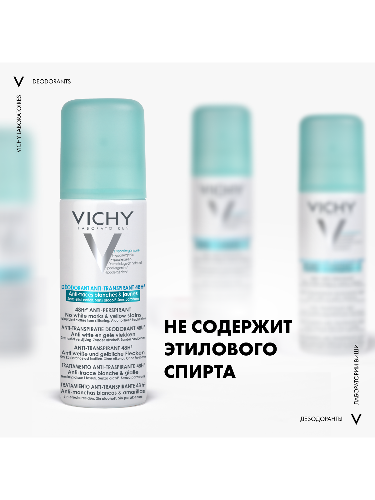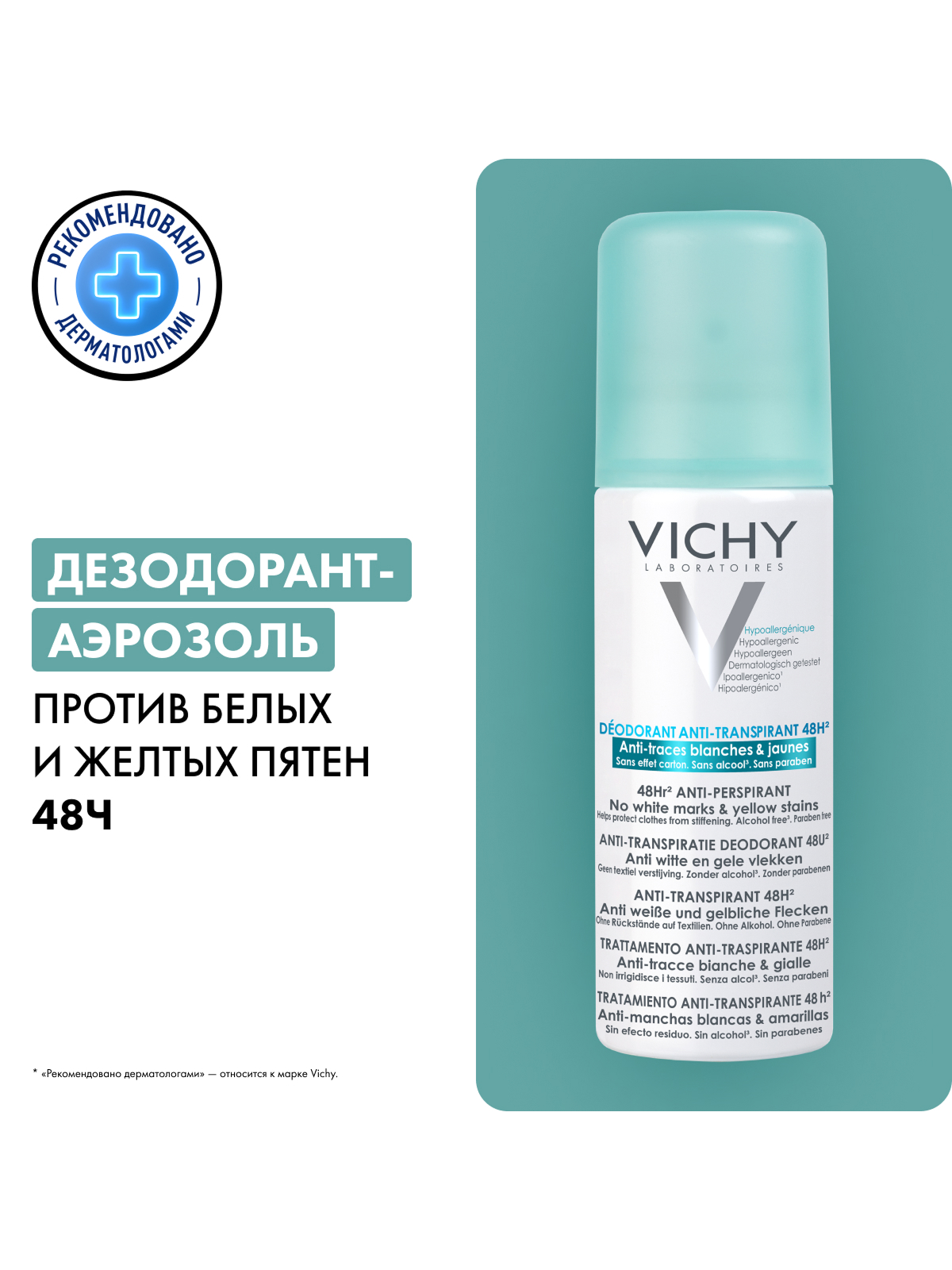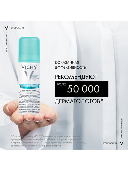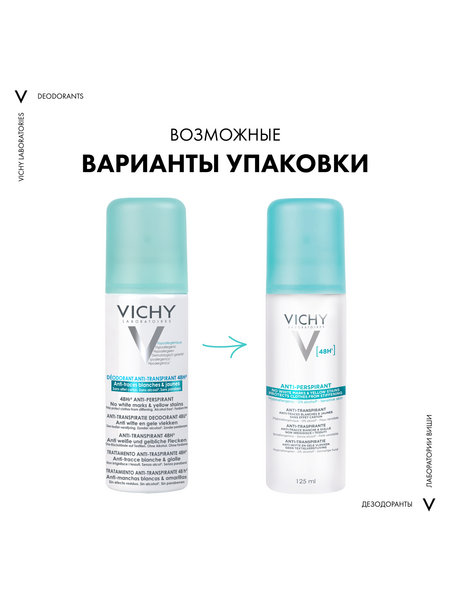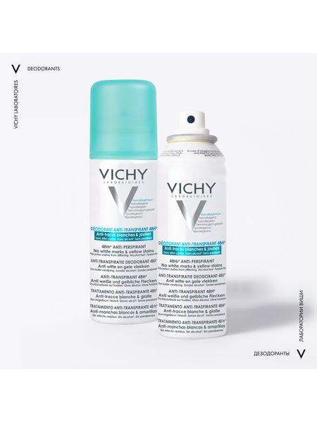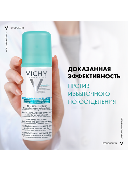 VICHY Дезодорант-аэрозоль против белых и желтых пятен 48 часов защиты, 125 мл