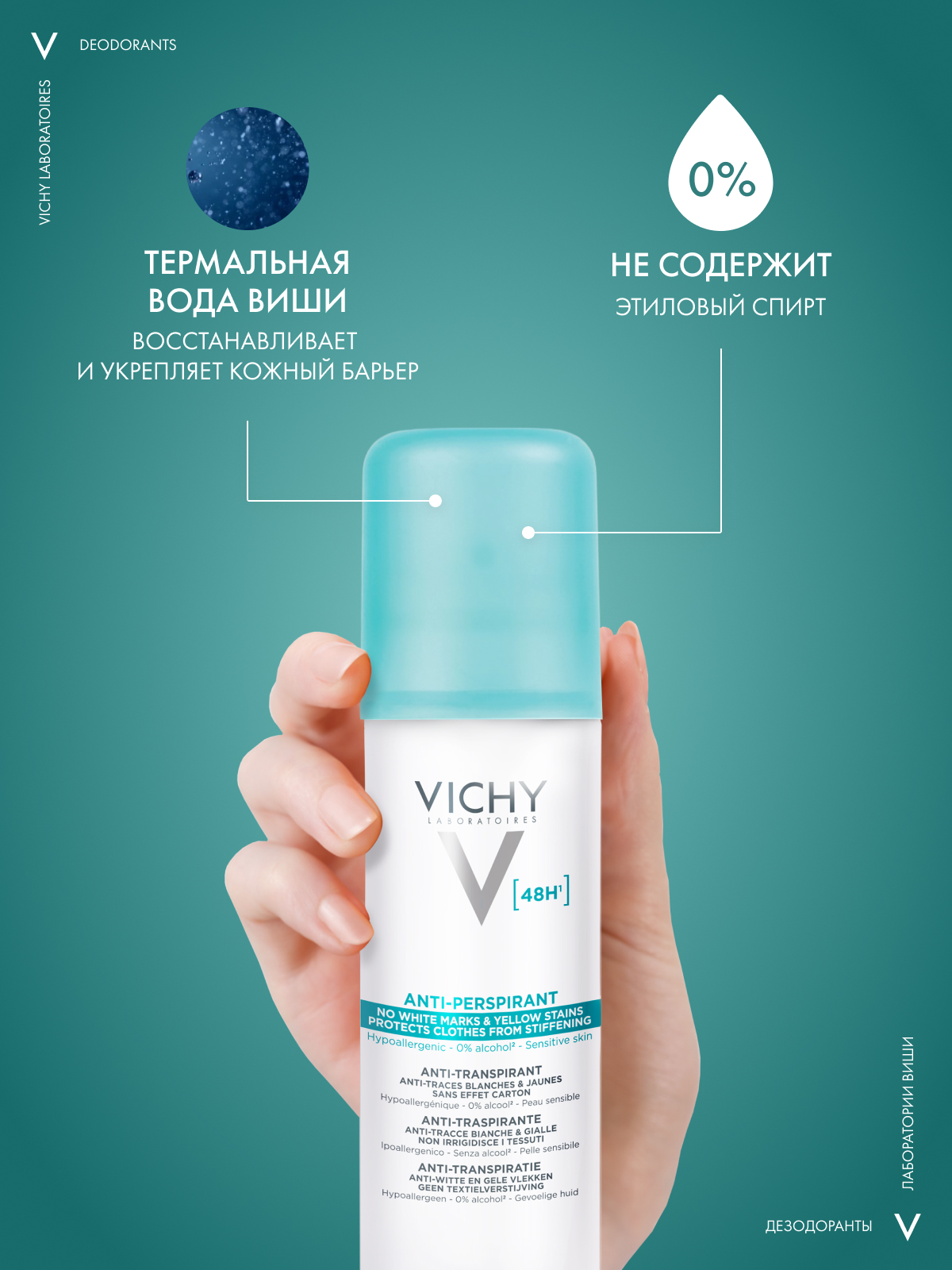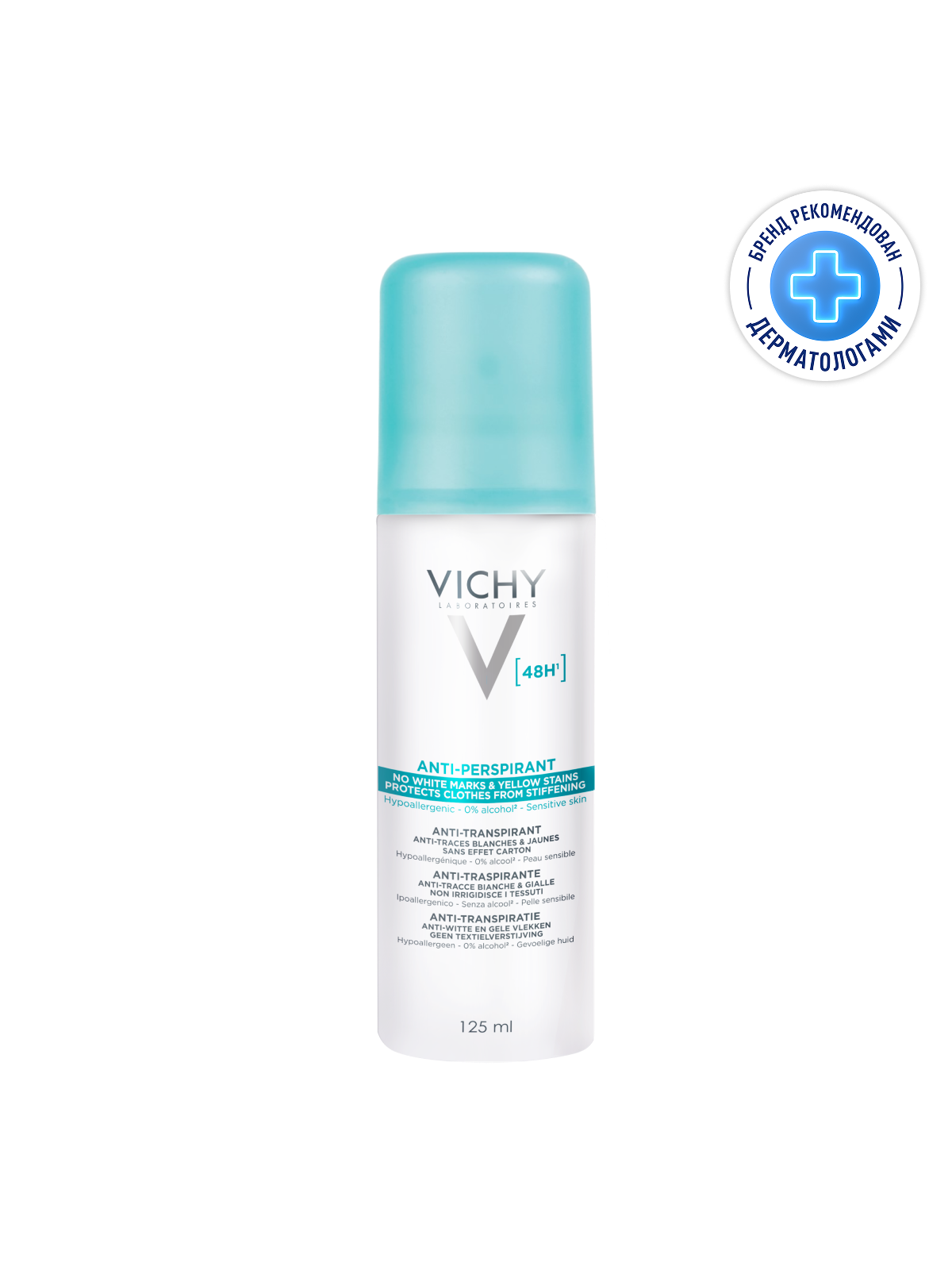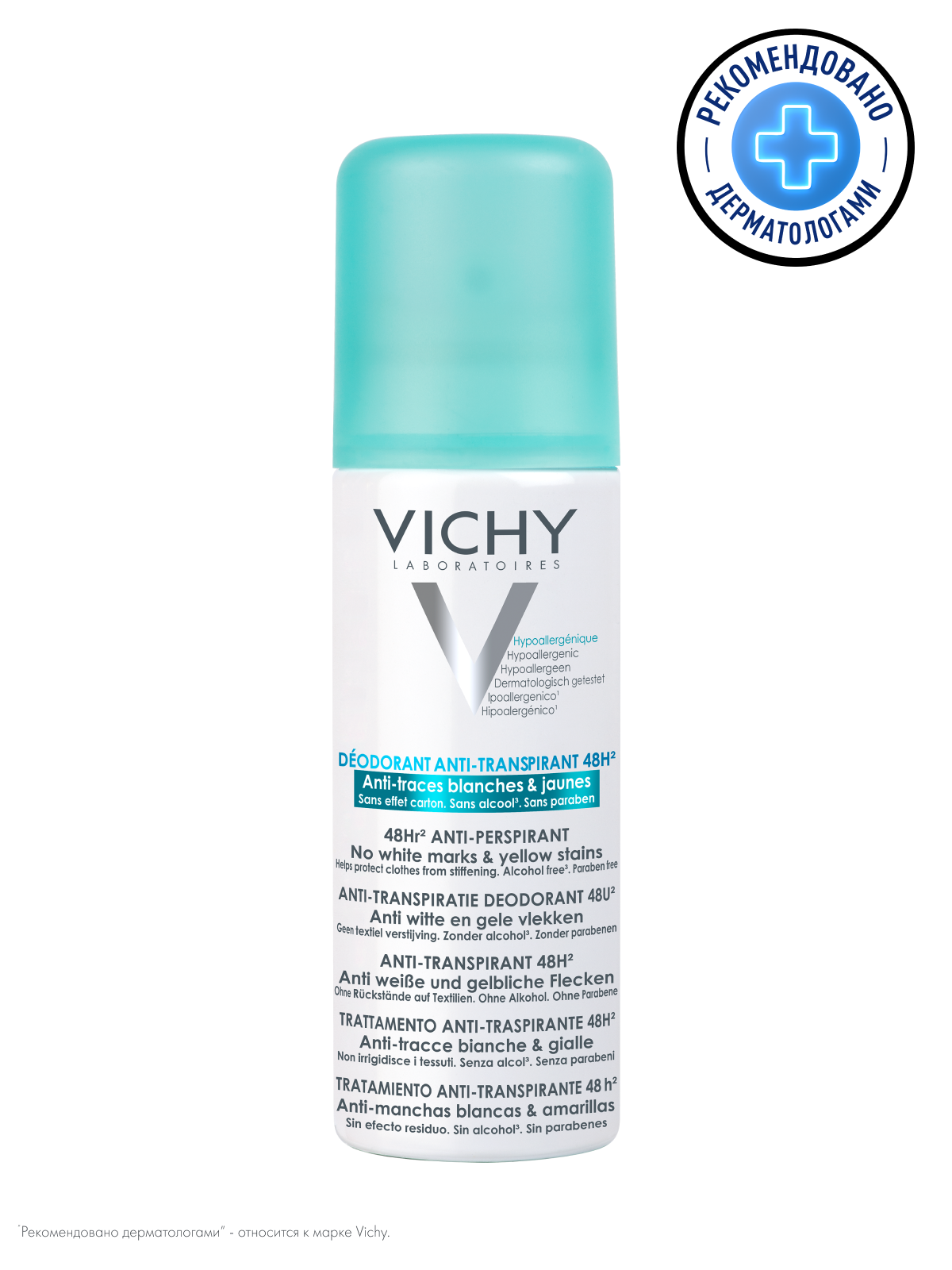 VICHY Дезодорант-аэрозоль против белых и желтых пятен 48 часов защиты, 125 мл