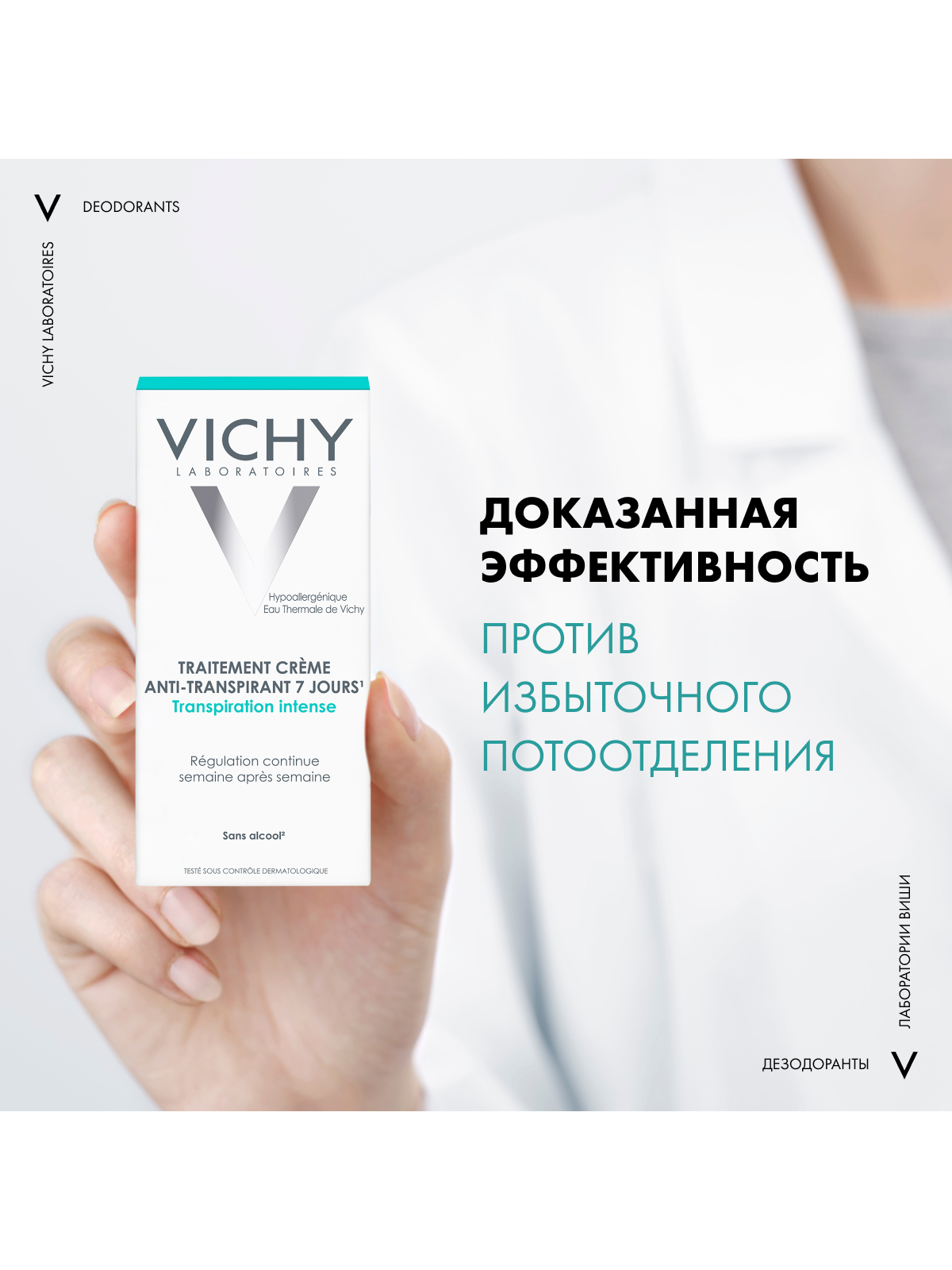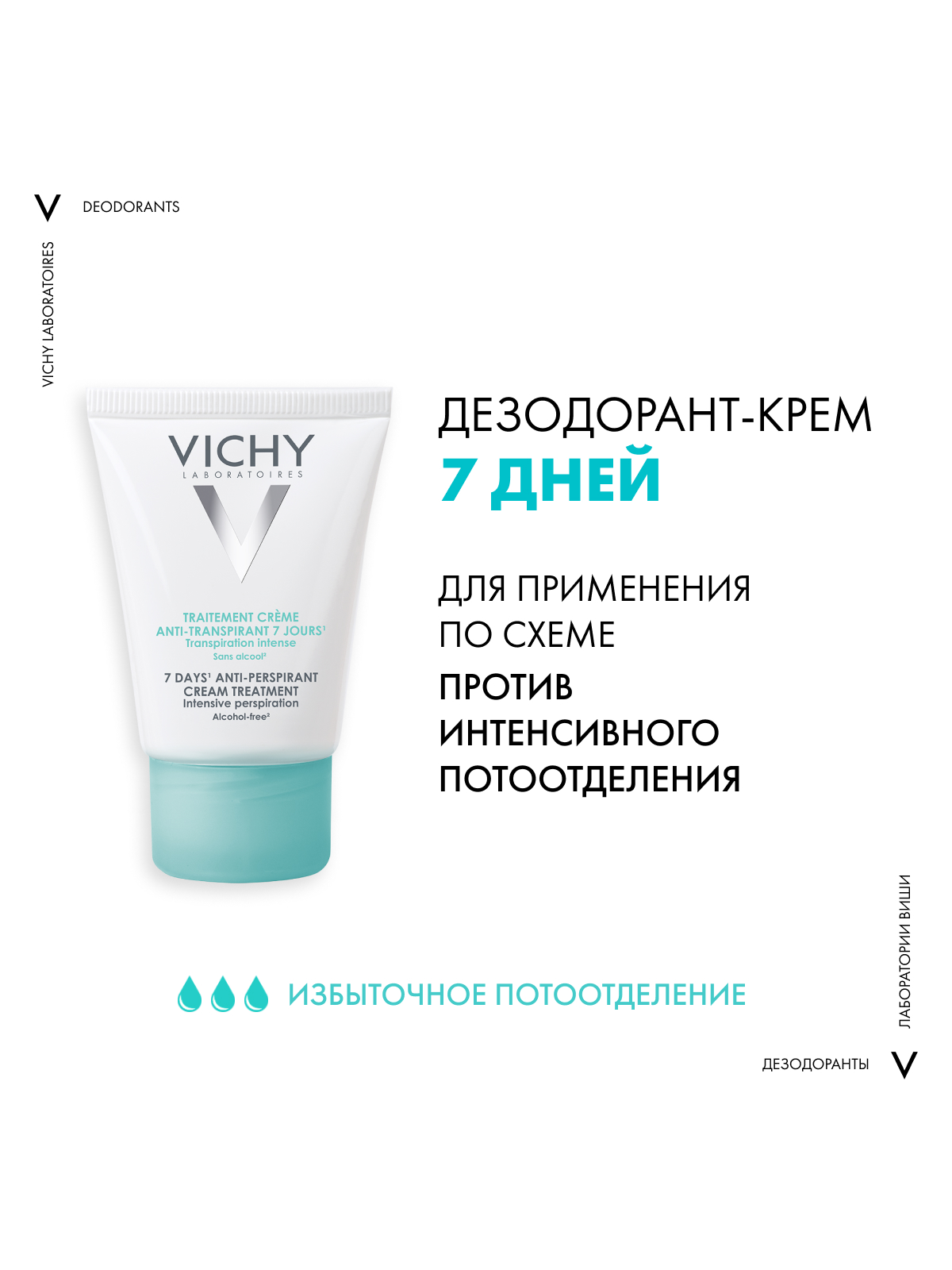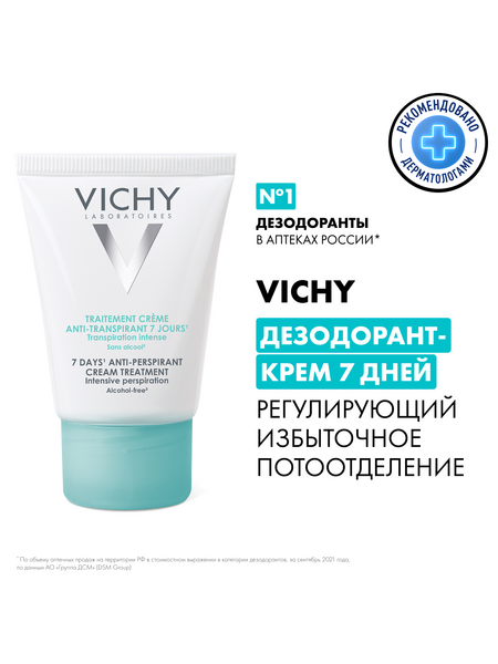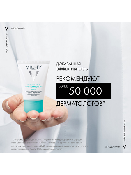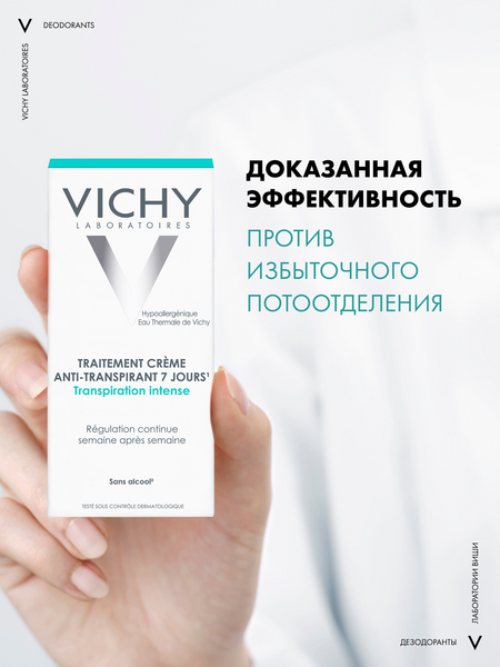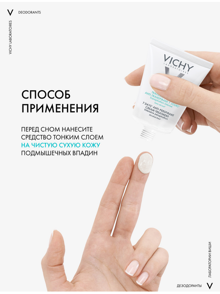 Регулирует избыточное потоотделение до 7 дней. Уровень потоотделения нормализуется с каждой новой неделей использования крема. Протестировано под дерматологическим контролем. Гипоаллергенная формула, не содержит спирта, без парабенов.