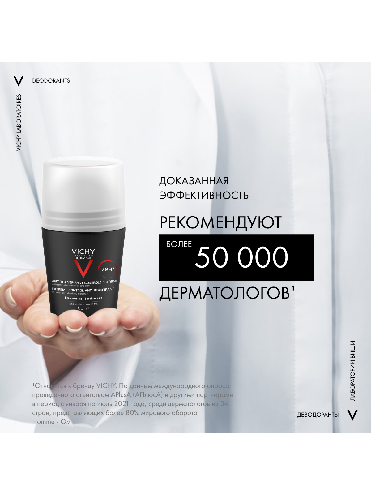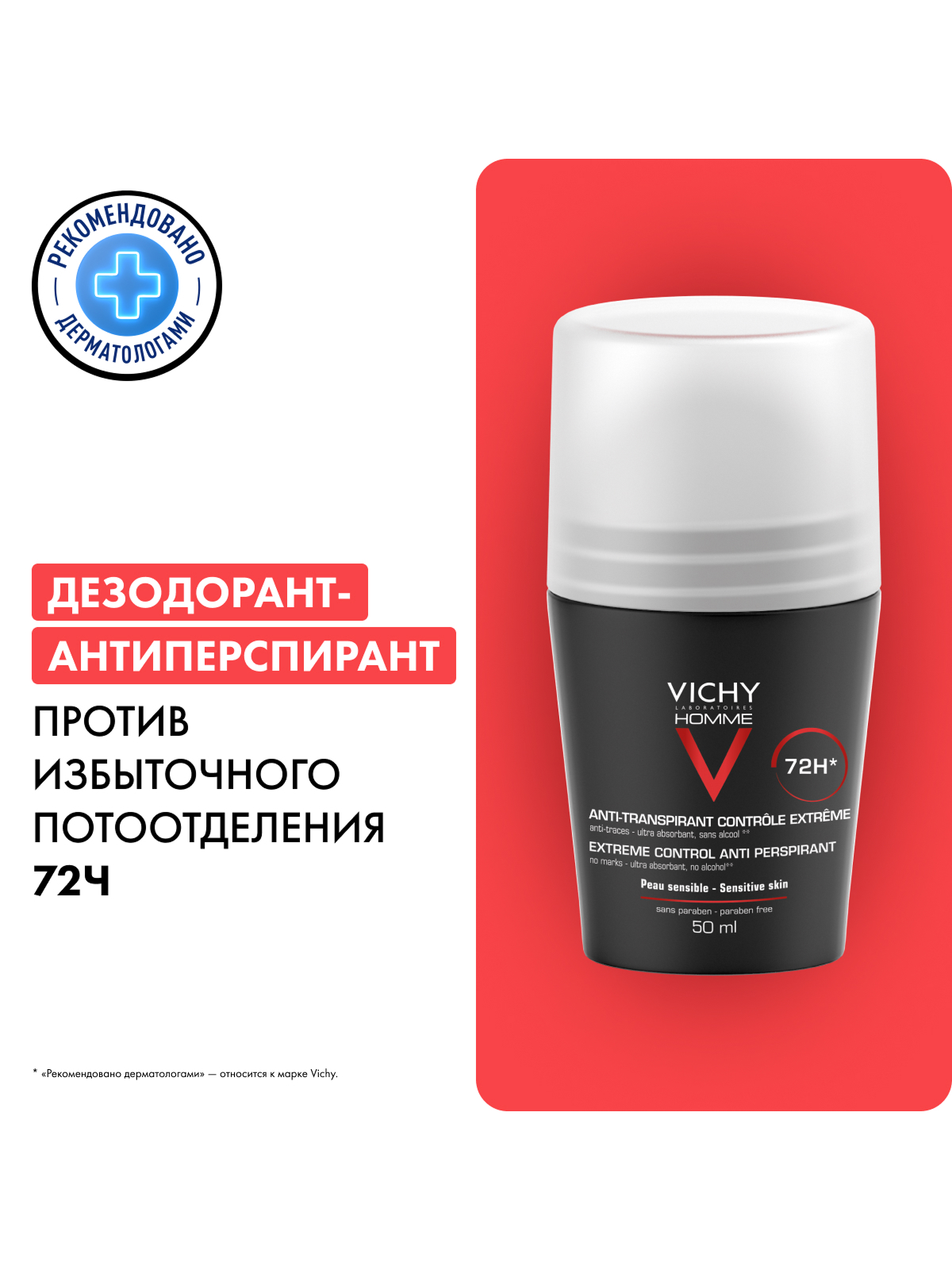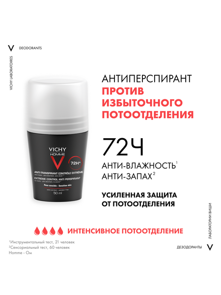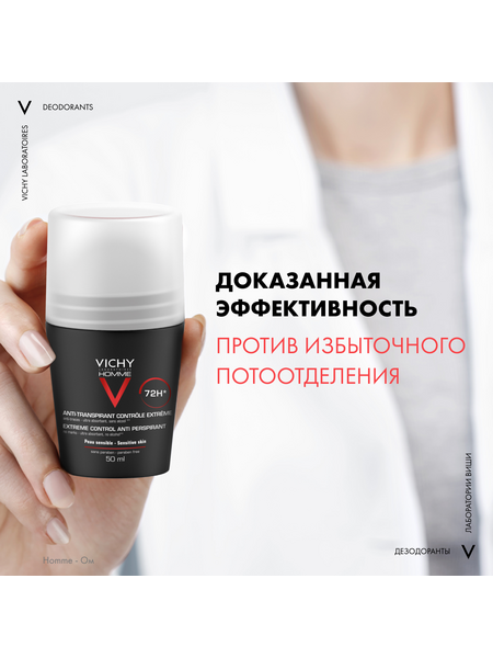 VICHY HOMME Дезодорант против избыточного потоотделения 72 часа, 50 мл