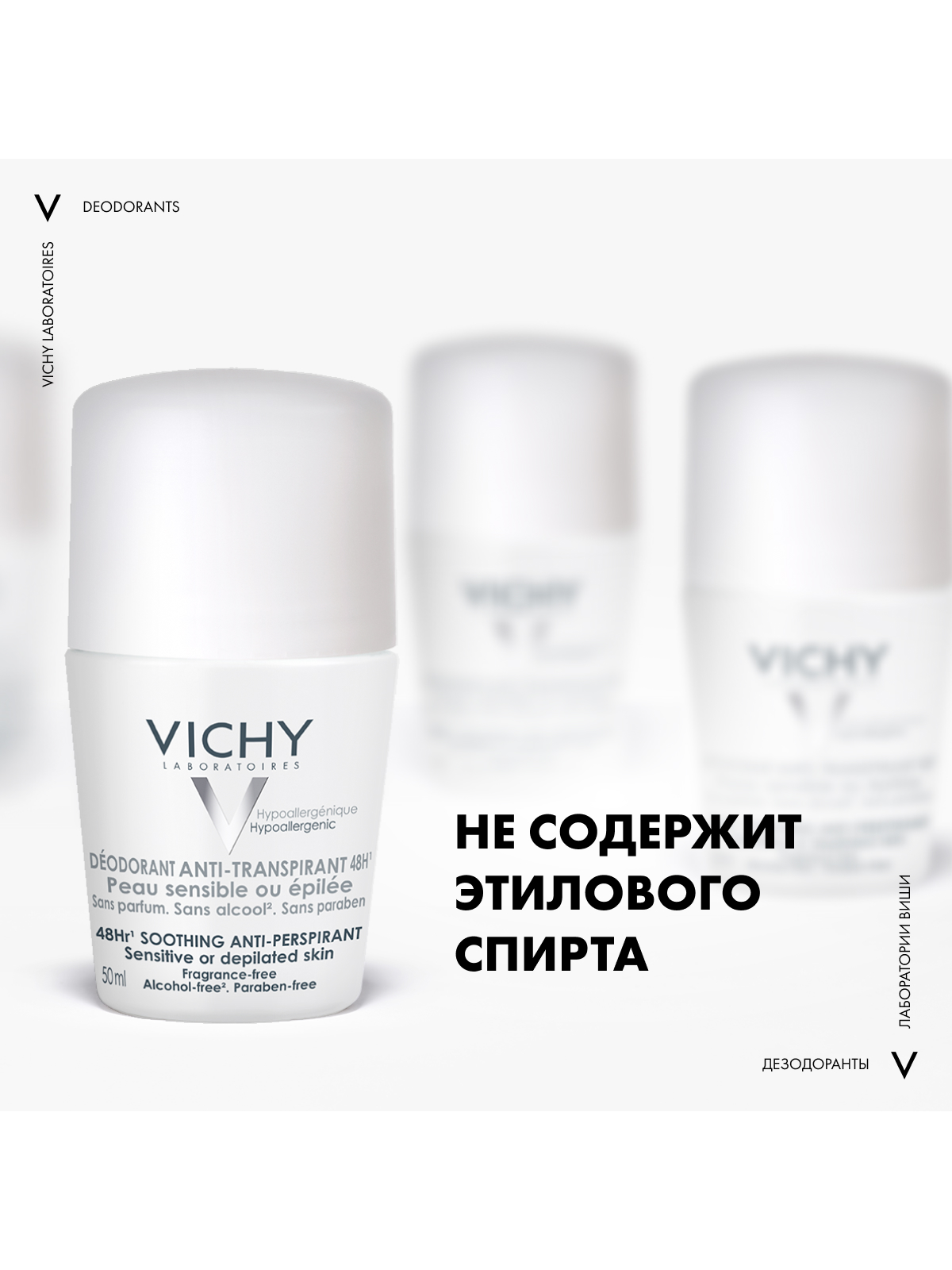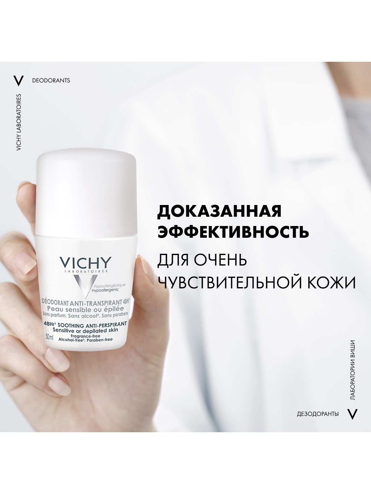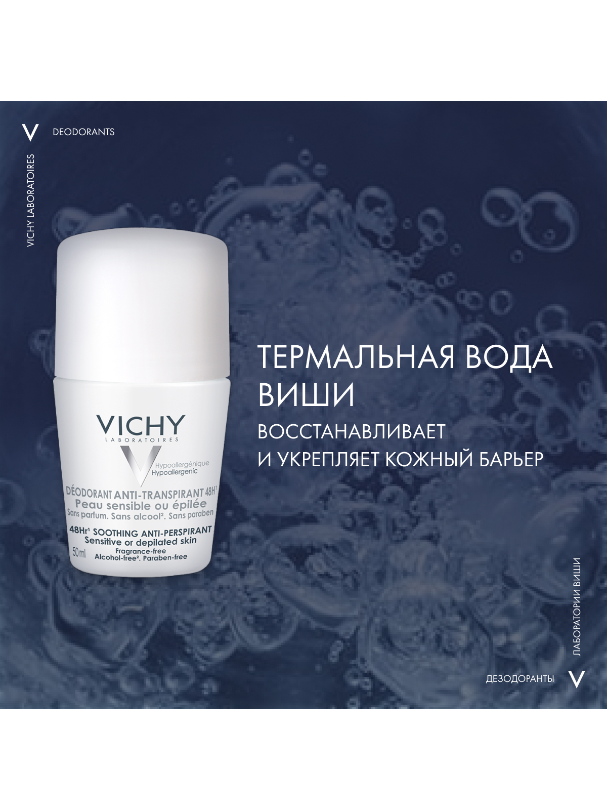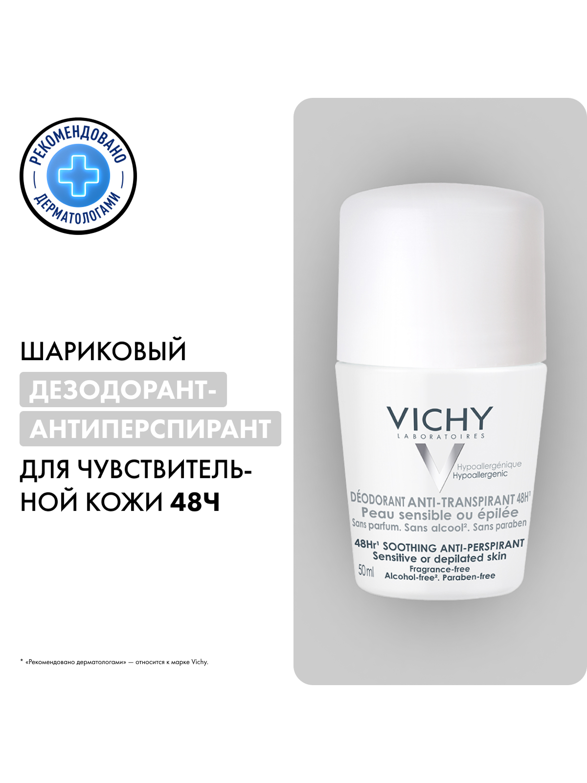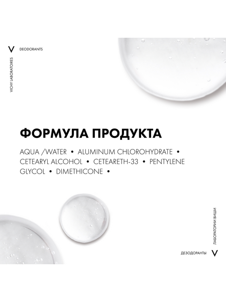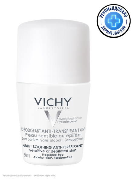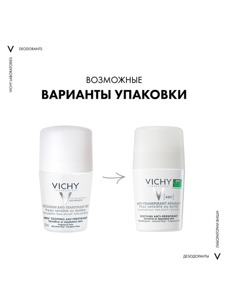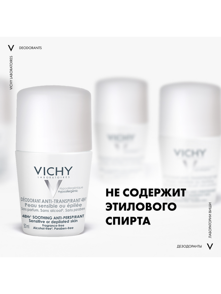 Vichy шариковый дезодорант для чувствительной кожи 48 часов, 50 мл
