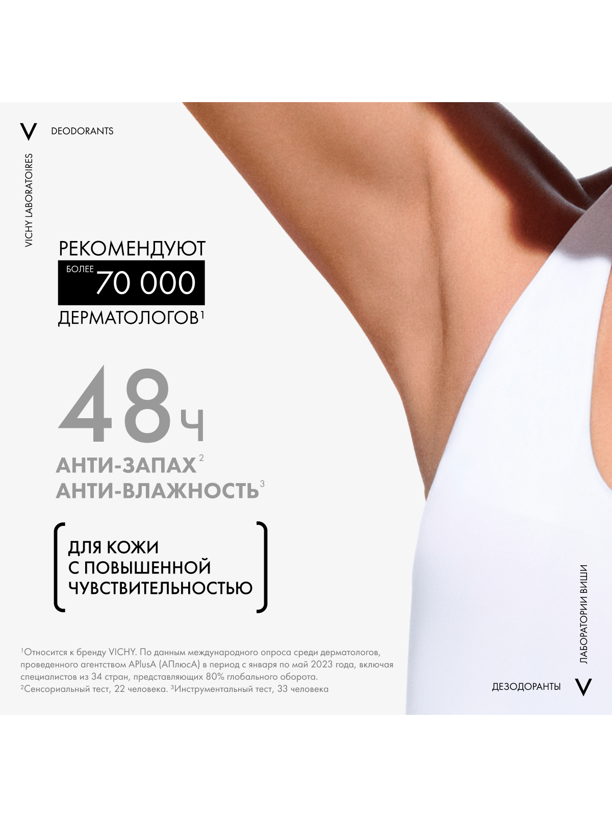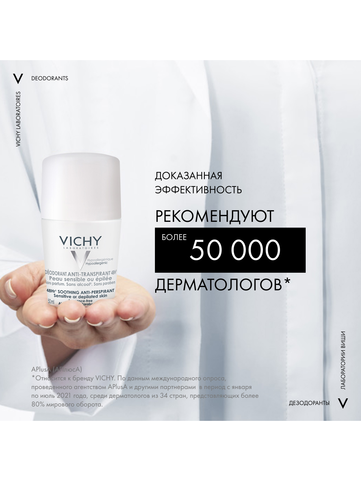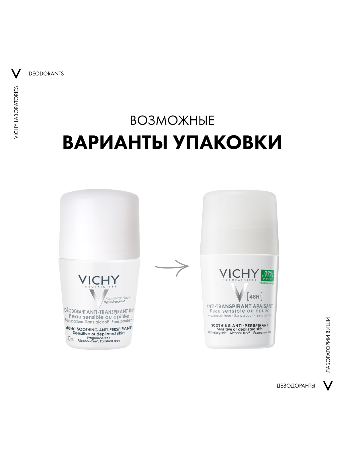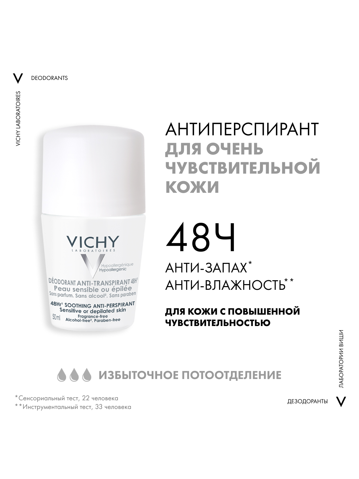 Vichy шариковый дезодорант для чувствительной кожи 48 часов, 50 мл