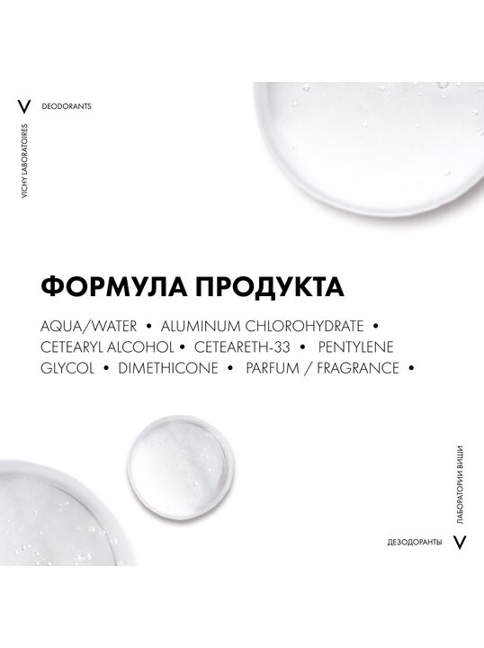 Регулирует избыточное потоотделение на протяжении 48 часов, устраняет неприятный запах, не оставляет ощущения дискомфорта кожи, обладает подсушивающим действием. Протестировано под дерматологическим контролем. Гипоаллергенная формула, не содержит спирта, без парабенов.