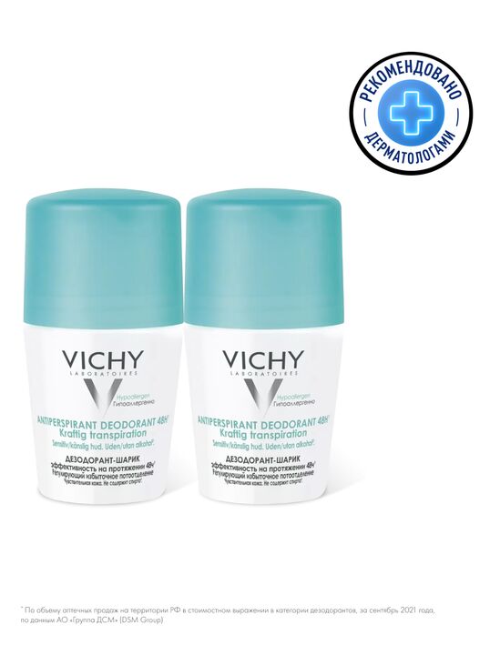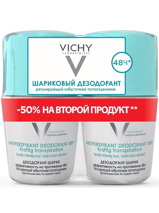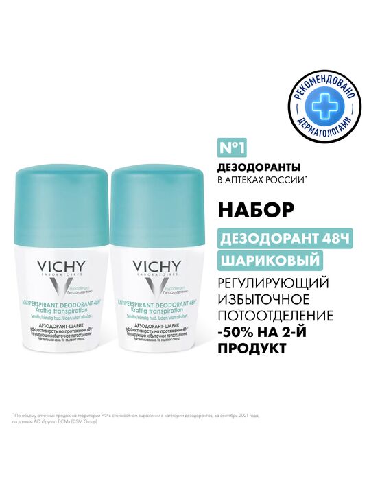Набор VICHY дуопак Дезодорант-антиперспирант от избыточного потоотделения с защитой 48ч 50мл х2 (-50% НА 2-Й ПРОДУКТ)