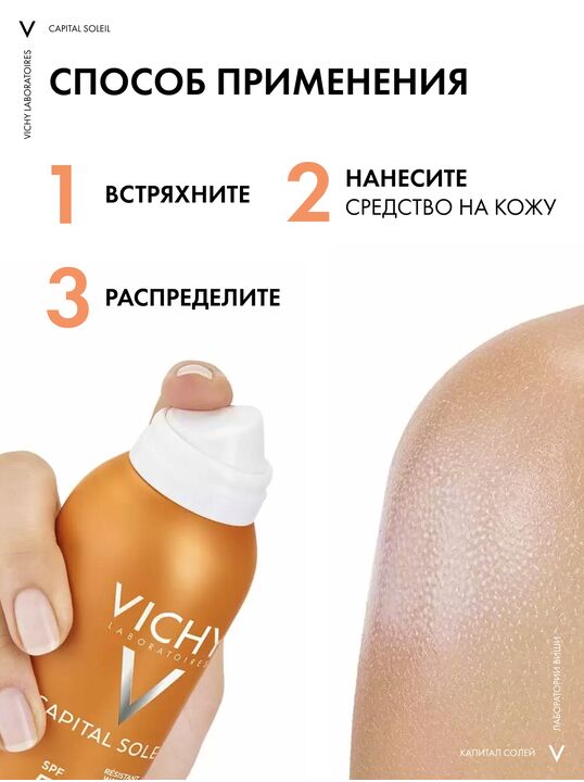 Невесомый спрей-вуаль, прозрачной дымкой ложится на кожу, быстро впитывается, не оставляет разводов и белых следов.