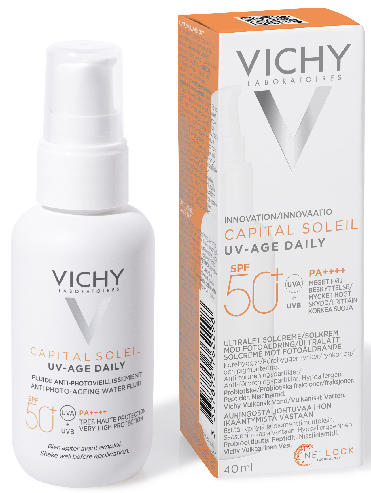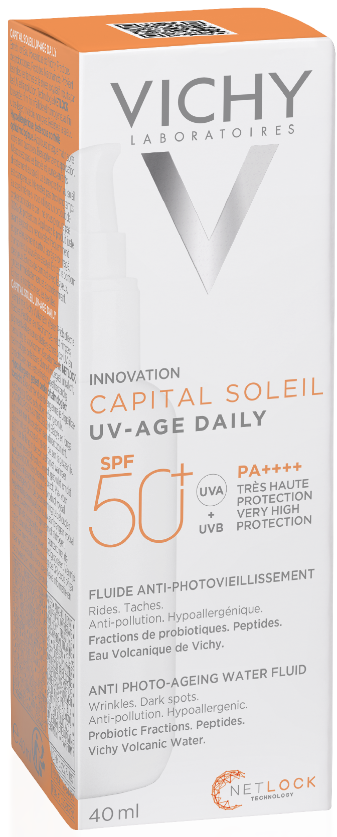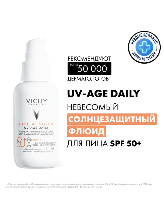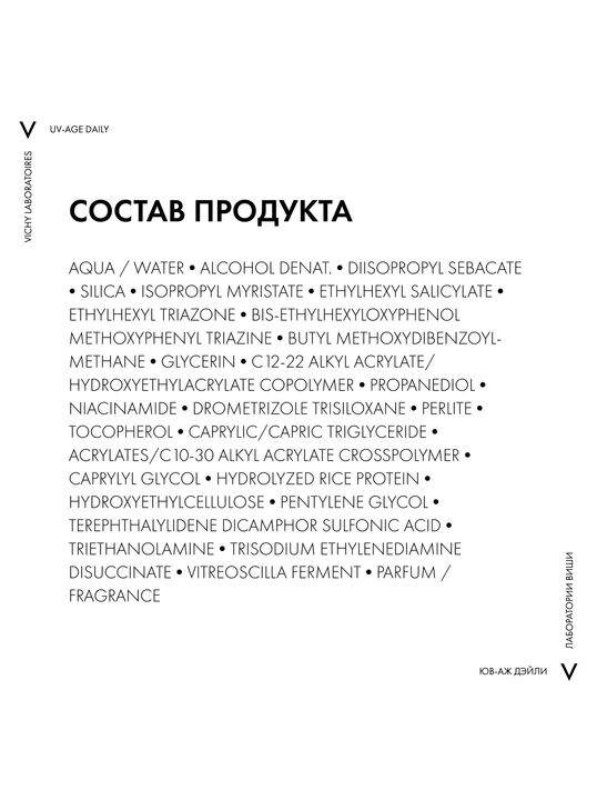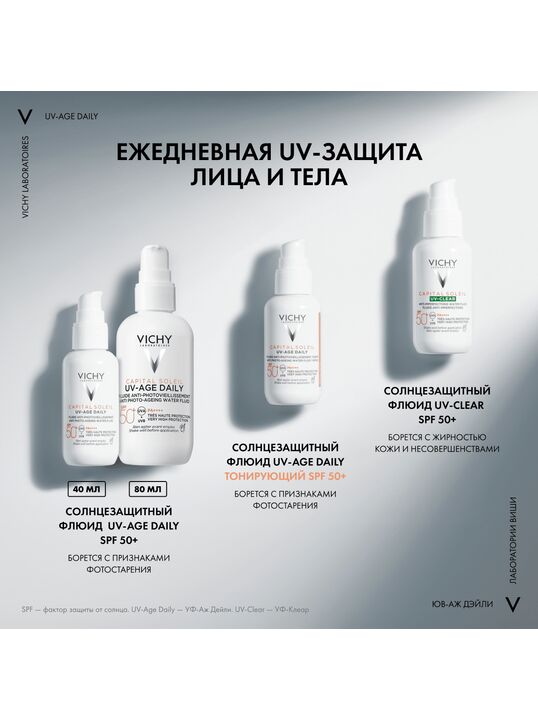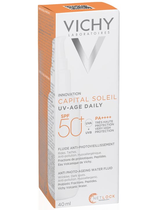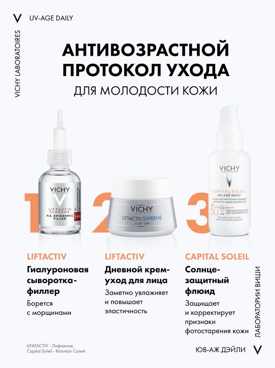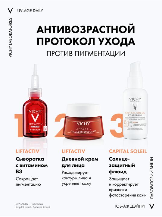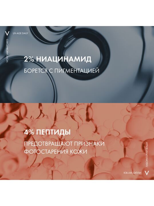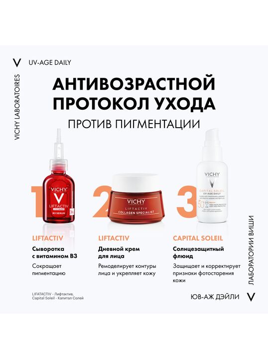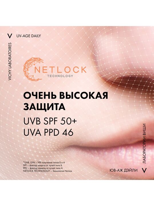 Формула, усиленная вулканической термальной водой VICHY, пробиотической фракцией, пептидом и ниацинамидом в составе, защищает от признаков фотостарения кожи - пигментации, преждевременных морщин и снижения эластичности кожи, вызванных воздействием UV-лучей. Обеспечивает антиоксидантную защиту от последствий негативного воздействия окружающей среды и инфракрасного излучения. Запатентованная технология NETLOCK создает на поверхности кожи невесомую и невидимую защиту. Легкая нелипкая текстура флюида не ощущается на коже и устойчива к поту. Протестировано под дерматологическим и офтальмологическим контролем. Гипоаллергенно. Подходит для чувствительной кожи.