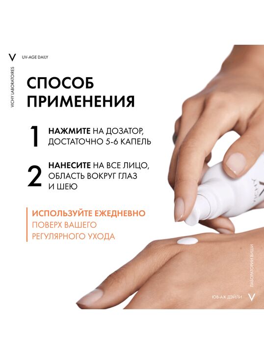 Наносить каждое утро поверх основного ухода. Хорошо взболтать перед использованием. Чрезмерное пребывание на солнце опасно. Обильно и часто повторяйте нанесение средства, особенно в случае продолжительного нахождения на солнце. Избегайте слишком долгого пребывания на солнце даже при использовании солнцезащитного средства, так как ни одно средство не может обеспечить 100% защиту кожи. Наносите солнцезащитное средство на кожу непосредственно перед выходом на солнце. Для поддержания защиты регулярно и в достаточном количестве повторяйте нанесение средства, особенно после купания, интенсивного потоотделения или вытирания полотенцем. При попадании средства в глаза немедленно и тщательно промойте их водой. Избегайте попадания средства на одежду. Пожалуйста, посетите наш сайт, чтобы узнать больше о применении средства.