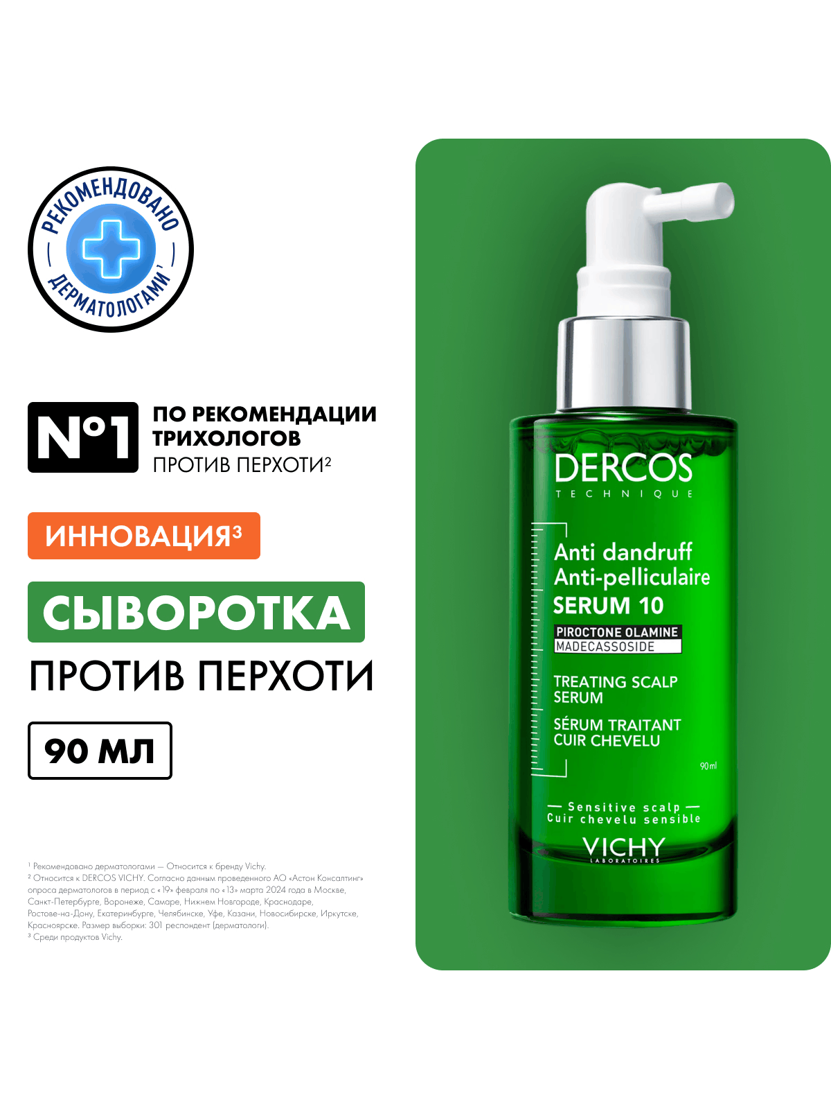 Интенсивная сыворотка VICHY DERCOS ANTI-DANDRUFF SERUM действует на 10 проблем кожи головы, которые могут быть связаны с перхотью.