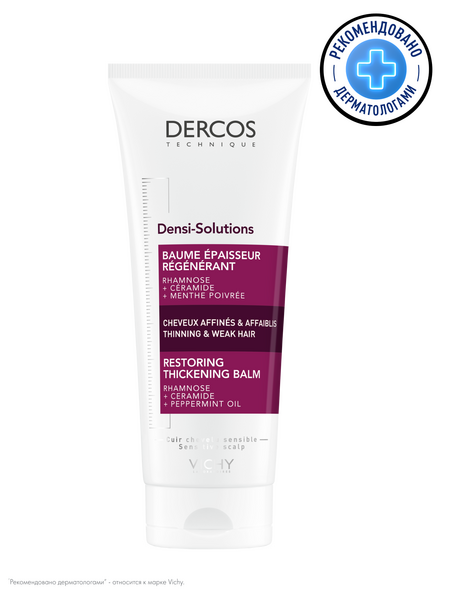 DENSI-SOLUTIONS - это инновационная гамма средств по уходу за волосами, которая комплексно борется со всеми аспектами проблемы истончения волос. Уплотняющий бальзам Dercos Densi-Solutions увеличивает массу волос. Он укрепляет и уплотняет волокно волоса с каждым применением, придавая волосам объем и здоровый вид.