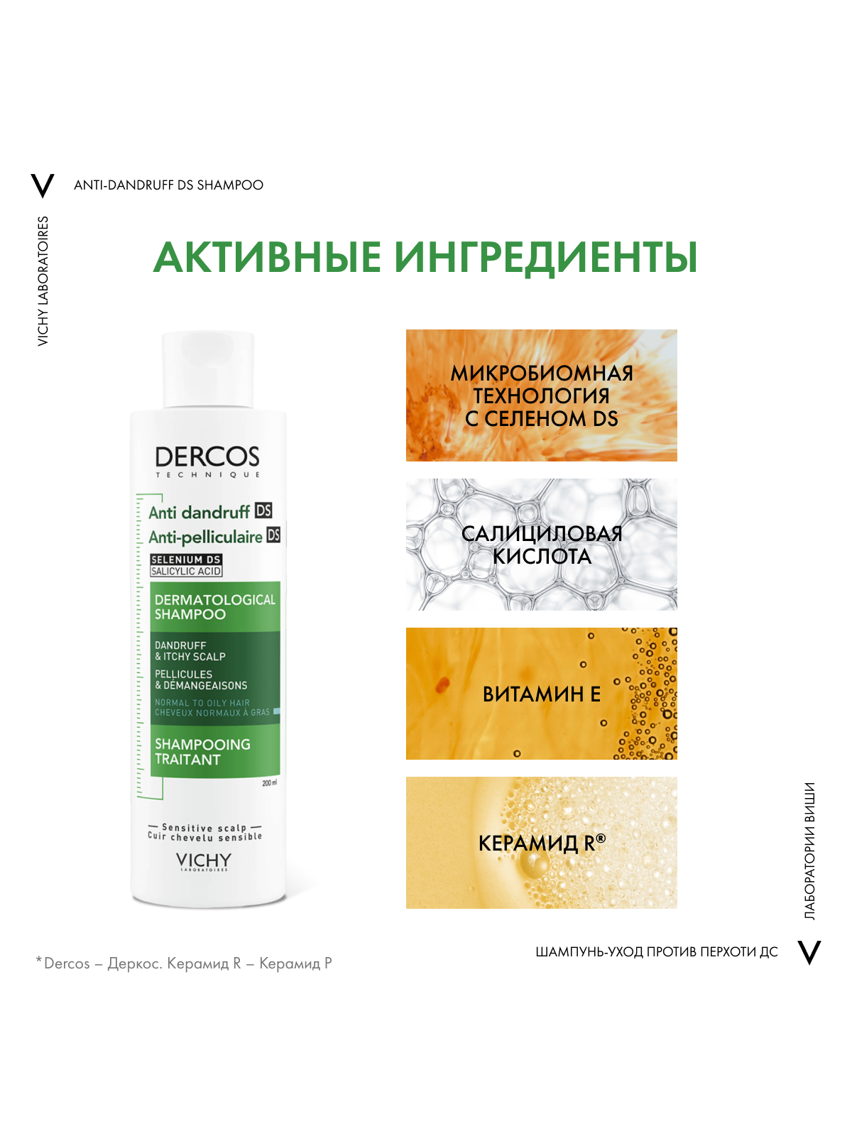 Впервые Лаборатории VICHY DERCOS выявили, что причина появления перхоти – не только рост бактерии Malassezia,но и дисбаланс всего микробиома кожи головы (совокупность микроорганизмов, в норме присутствующих на коже). Этот дисбаланс усиливается под воздействием таких факторов, как агрессивная внешняя среда, экология, стресс, усталость.