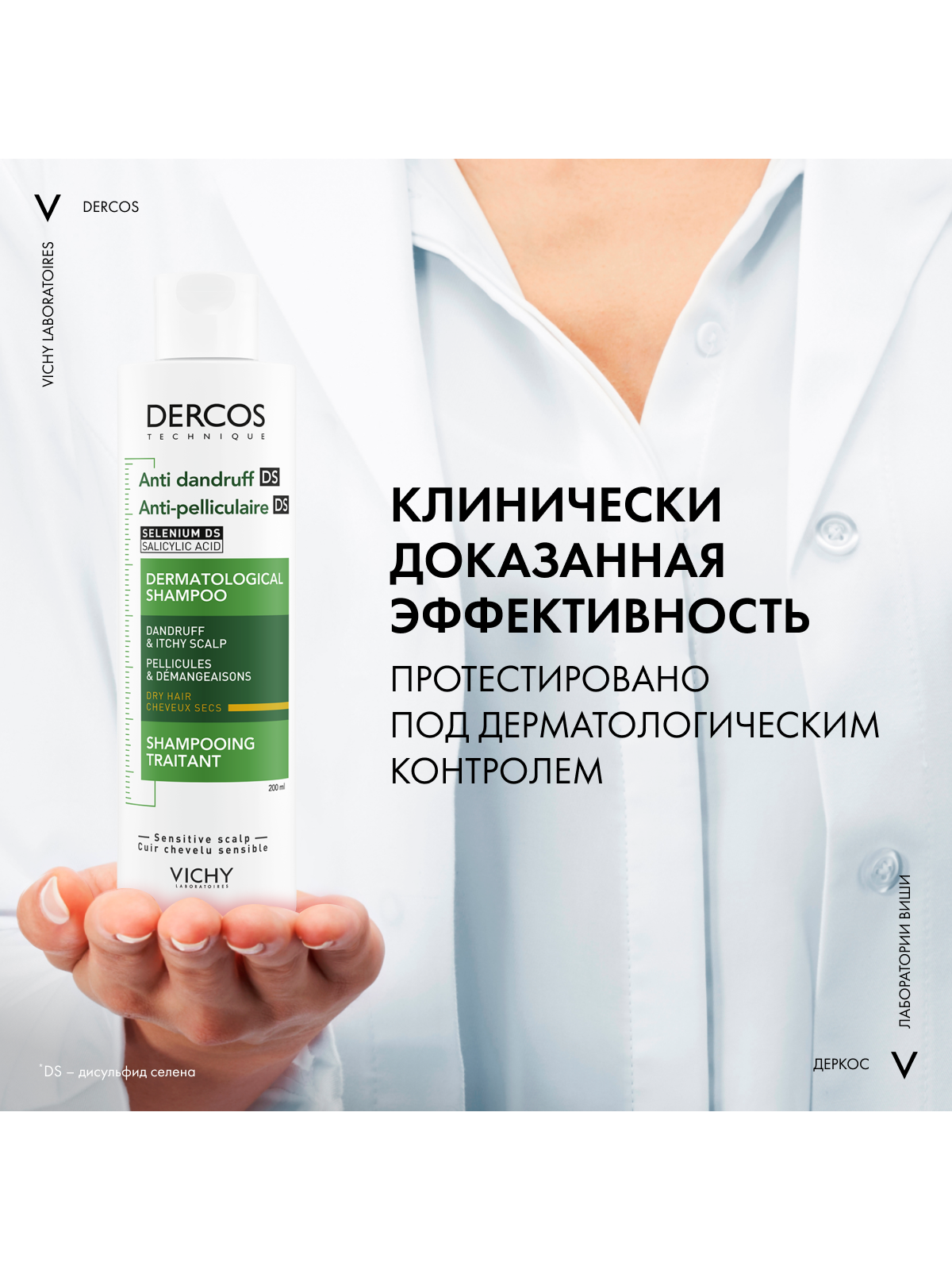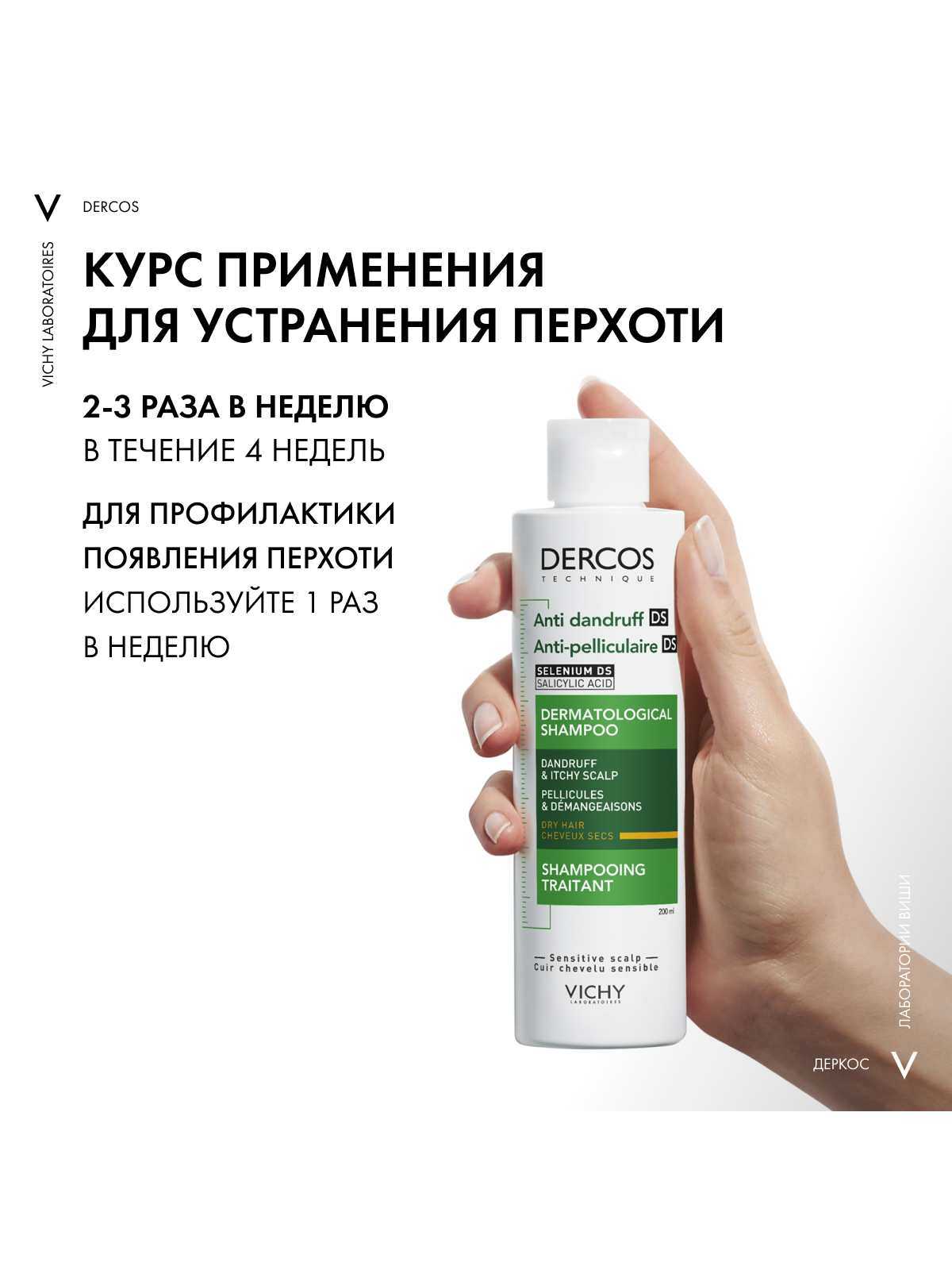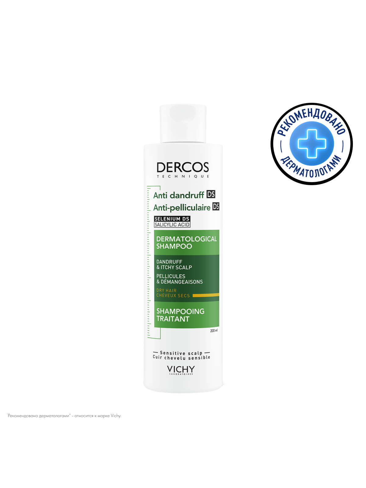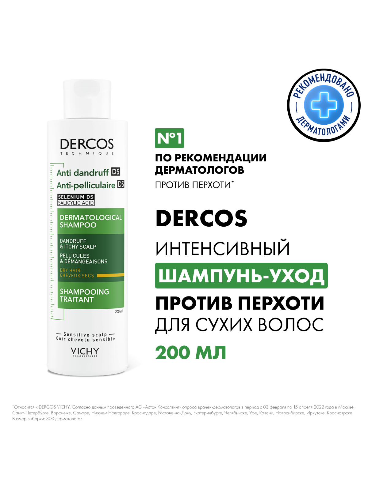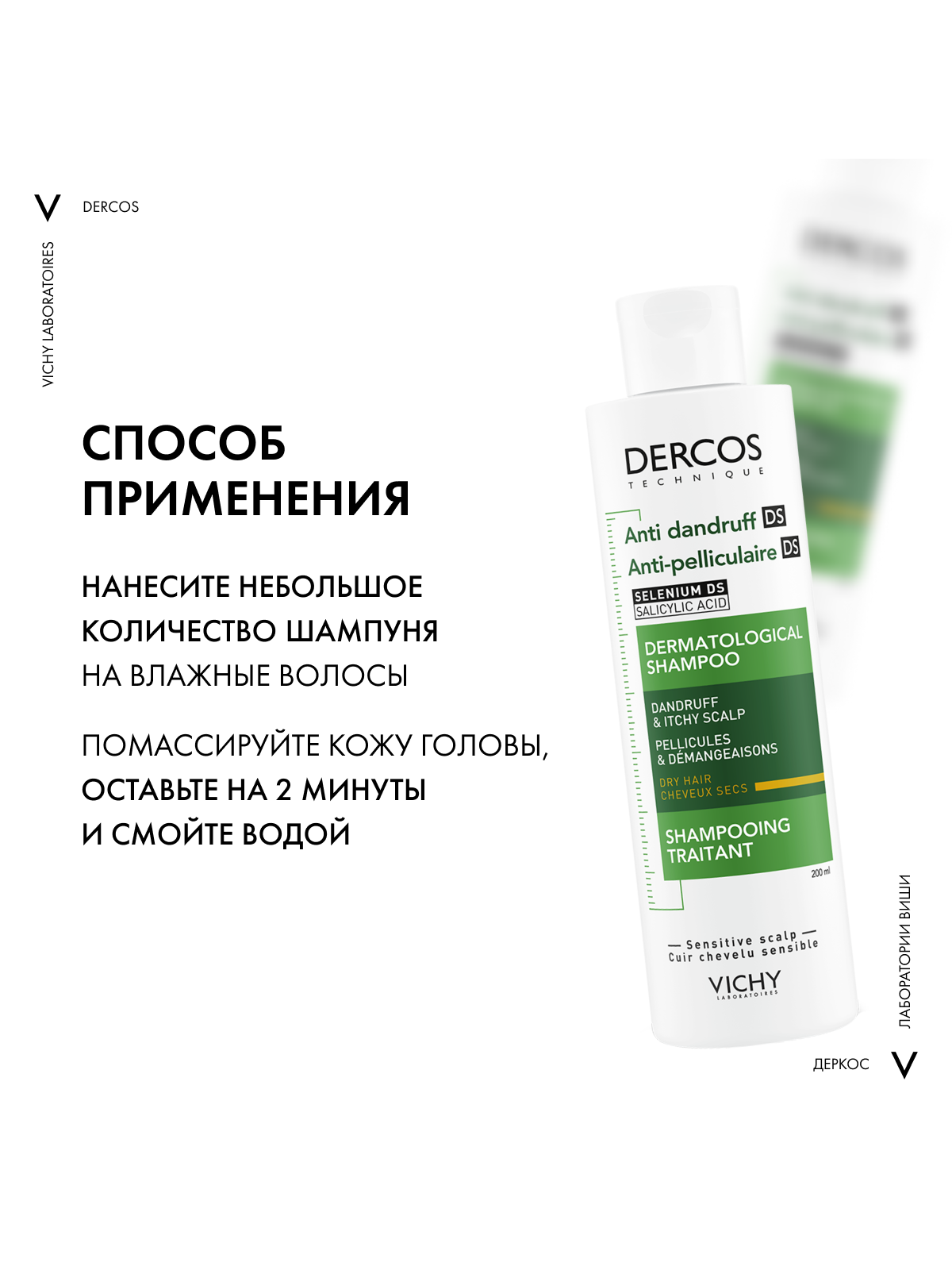 VICHY DERCOS Интенсивный шампунь-уход против перхоти для сухих волос, 200 мл