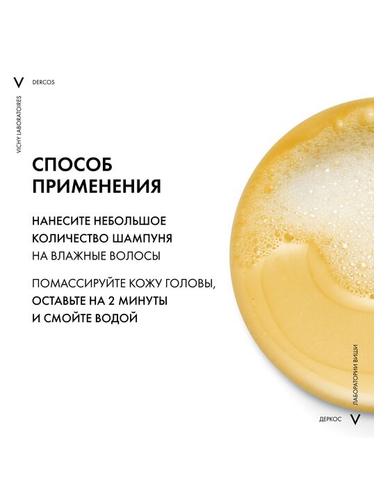 Нанесите небольшое количество шампуня на влажные волосы, помассируйте, оставьте на 2 минуты, смойте водой.
