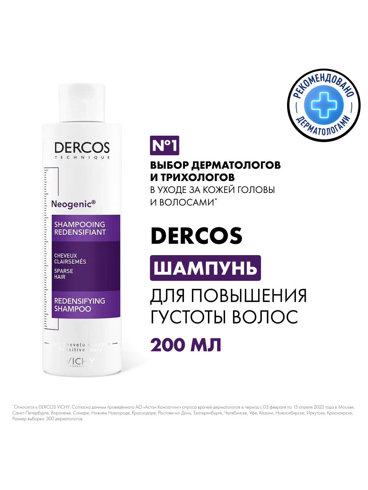 VICHY DERCOS NEOGENIC Шампунь для повышения густоты волос, 200 мл