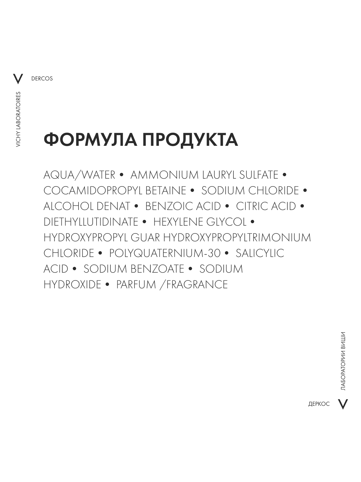 AQUA/WATER, AMMONIUM LAURYL SULFATE,COCAMIDOPROPYL BETAINE, SODIUM CHLORIDE,ALCOHOL DENAT., BENZOIC ACID, CITRIC ACID,D IETHYLLUTIDINATE, HEXYLENE GLYCOL ,HYDROXYPROPYL GUAR HYDROXYPROPYLTRIMONIUMCHLORIDE, POLYQUATERNIUM-30, SALICYLIC ACID,SODIUM BENZOATE, SODIUM HYDROXIDE, PARFUM /FRAGRANCE