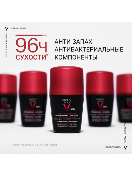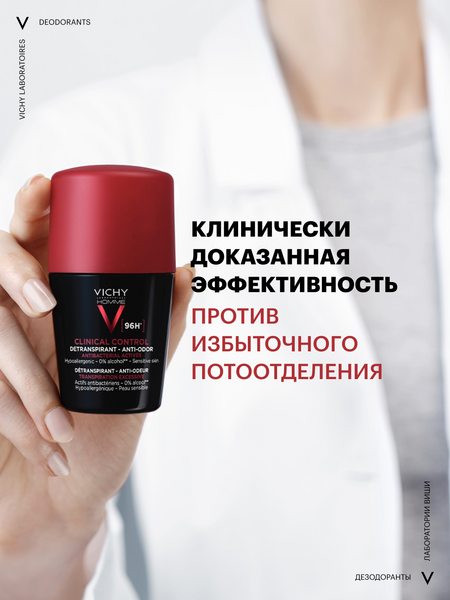 Антиперспирант: Формула с клинически доказанной эффективностью обеспечивает максимальную¹ сухость кожи зоны подмышек и защищает от избыточного потоотделения до 96 часов².