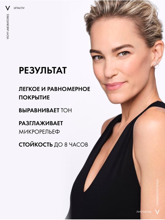 Тональный крем подходит для женщин с любым типом кожи. Рекомендуется для кожи с признаками старения. Крем обеспечивает легкое и равномерное покрытие, моментально улучшает внешний вид кожи. Текстура крема не скапливается в морщинах и не подчеркивает их. Стойкость крема 8 часов.