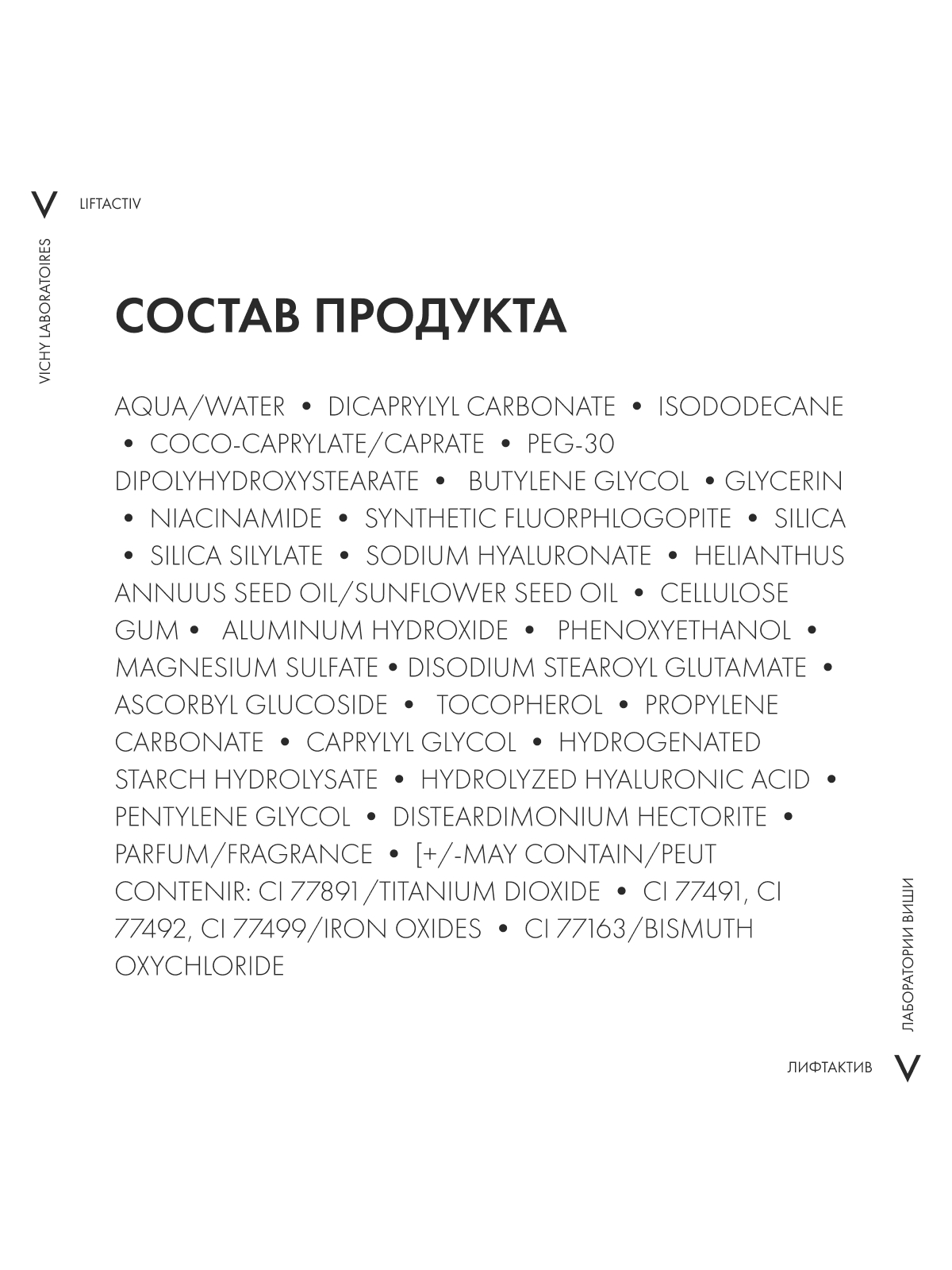 Наносить на очищенную кожу лица после нанесения Вашего ухода. Рекомендуется использовать совместно с гаммами антивозрастного ухода от VICHY.