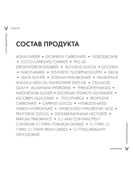 БрендVichy Возрастные ограничения30+ ГаммаLIFTACTIV НазначениеПервые признаки старения, Лифтинг, Тонирование недостатков Область примененияЛицо Состояние кожиНормальная, Для всех типов кожи, Возрастные изменения Тип продуктаТональная основа ПотребностьКоррекция тона кожи, Антивозрастной уход