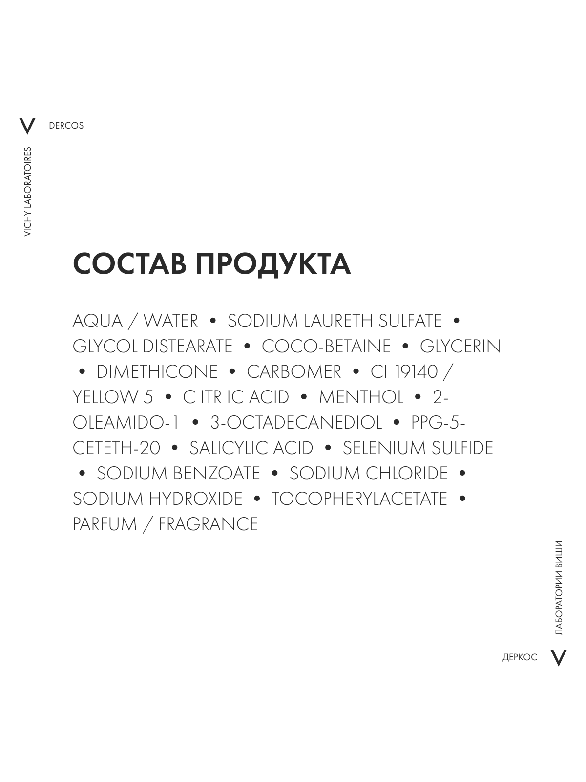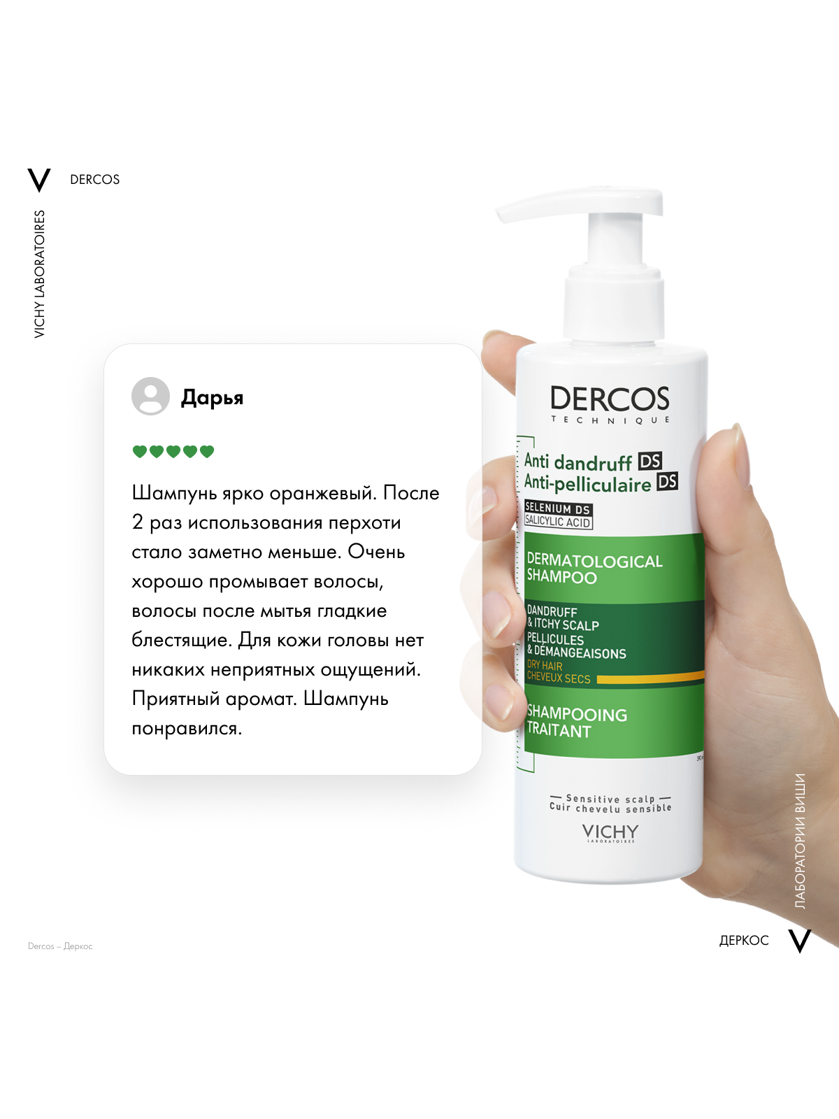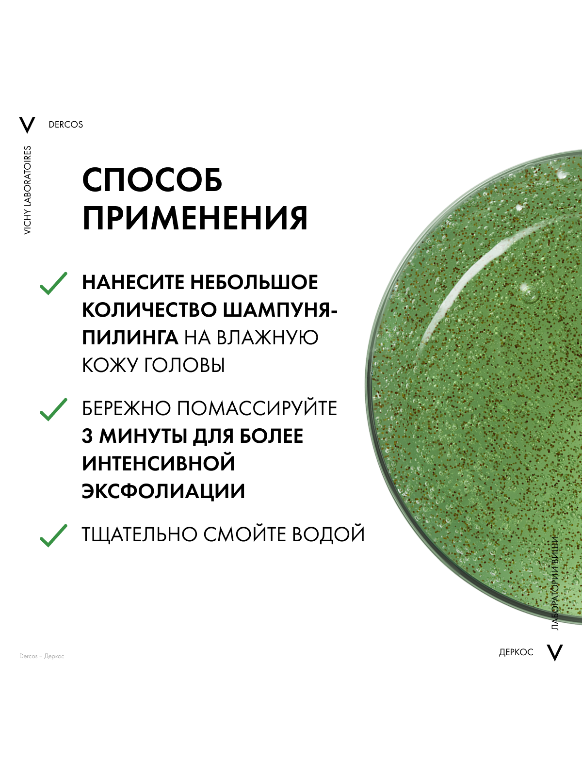 - Впервые Лаборатории VICHY DERCOS выявили, что причина появления перхоти – не только рост бактерии Malassezia, но и дисбаланс всего микробиома кожи головы (совокупности микроорганизмов, в норме присутствующих на коже). Этот дисбаланс усиливается под воздействием агрессивной внешней среды, экологии, стресса, усталости. Технология с Селеном DS – самым эффективным ингредиентом против перхоти – предотвращает зуд, восстанавливает микробиомный баланс и барьерные функции кожи головы. Способ применения и нанесения: Нанесите небольшое количество шампуня на влажные волосы, помассируйте, оставьте на 2 минуты и смойте водой. Курс применения для устранения перхоти: 2-3 раза в неделю в течение 4 недель. Для профилактики появления перхоти используйте 1 раз в неделю.