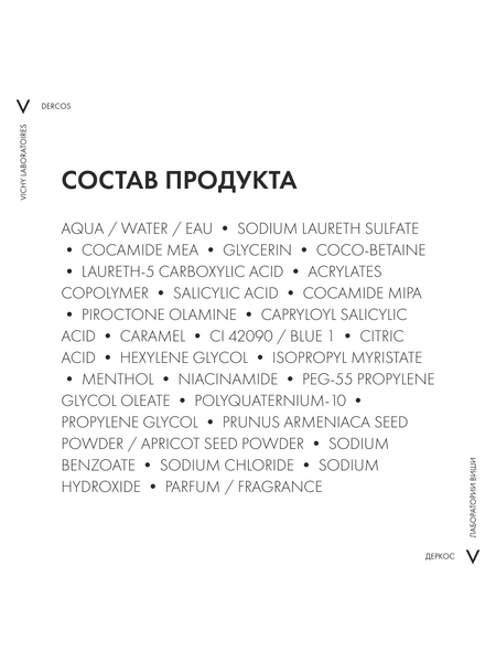 Глубоко очищающий шампунь-пилинг DERCOS разработан специально для борьбы с устойчивой трудновымываемой формой перхоти при повышенной жирности кожи головы. Формула с Пироктон Оламином и физиологическим pH 5,5 эффективно борется с жирной перхотью, связанной с дисбалансом микробиома кожи головы, и уменьшает зуд. Благодаря салициловой кислоте и отшелушивающим микрочастицам шампунь сочетает в себе химический и механический пилинг, устраняя прилипшие чешуйки и интенсивно очищая кожу головы. Способ применения и нанесения: Нанесите небольшое количество шампуня-пилинга на влажную кожу головы, бережно помассируйте для более интенсивной эксфолиации. Оставьте на 3 минуты, затем тщательно смойте. При попадании в глаза немедленно промойте их водой. Подходит для частого применения. Особенности состава: 1% Пироктон оламин; 1,3% Салициловая кислота; Глицерин; Ниацинамид; Микрочастицы абрикосовой косточки. - Брендированный шоппер Vichy в подарок.