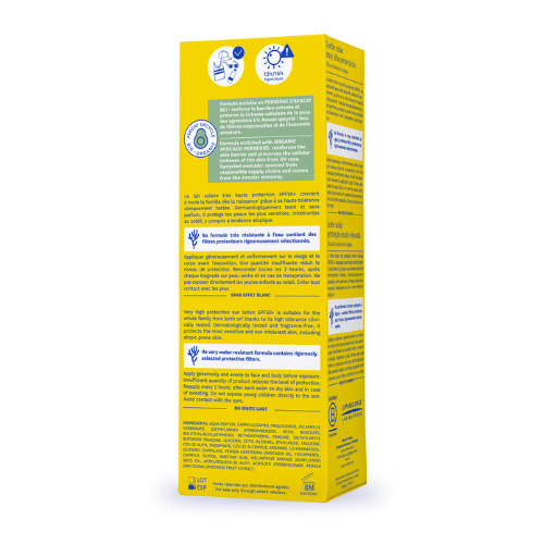 Укрепляет кожный барьер, сохраняет клеточные ресурсы кожи малыша от воздействия УФ лучей, благодаря Avocado Perseose®. Можно использовать с рождения. Для лица и тела.