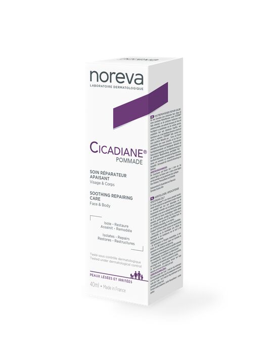 Формула Noreva Cicadiane восстанавливающая мазь разработана дерматологами специально для ухода за поврежденной и ослабленной кожей. Уникальное сочетание активных компонентов обеспечивает интенсивное увлажнение эпидермиса и ускоряет его регенерацию. Сразу после нанесения мазьНорева Cicadiane образует невидимую защитную пленку, которая препятствует размножению бактерий, оберегает от внешних агрессий и способствует безопасному процессу восстановления кожи. Средство имеет легкую текстуру, быстро впитывается, не вызывая боли и дискомфорта. Крем прошел клинические исследования под дерматологическим контролем.