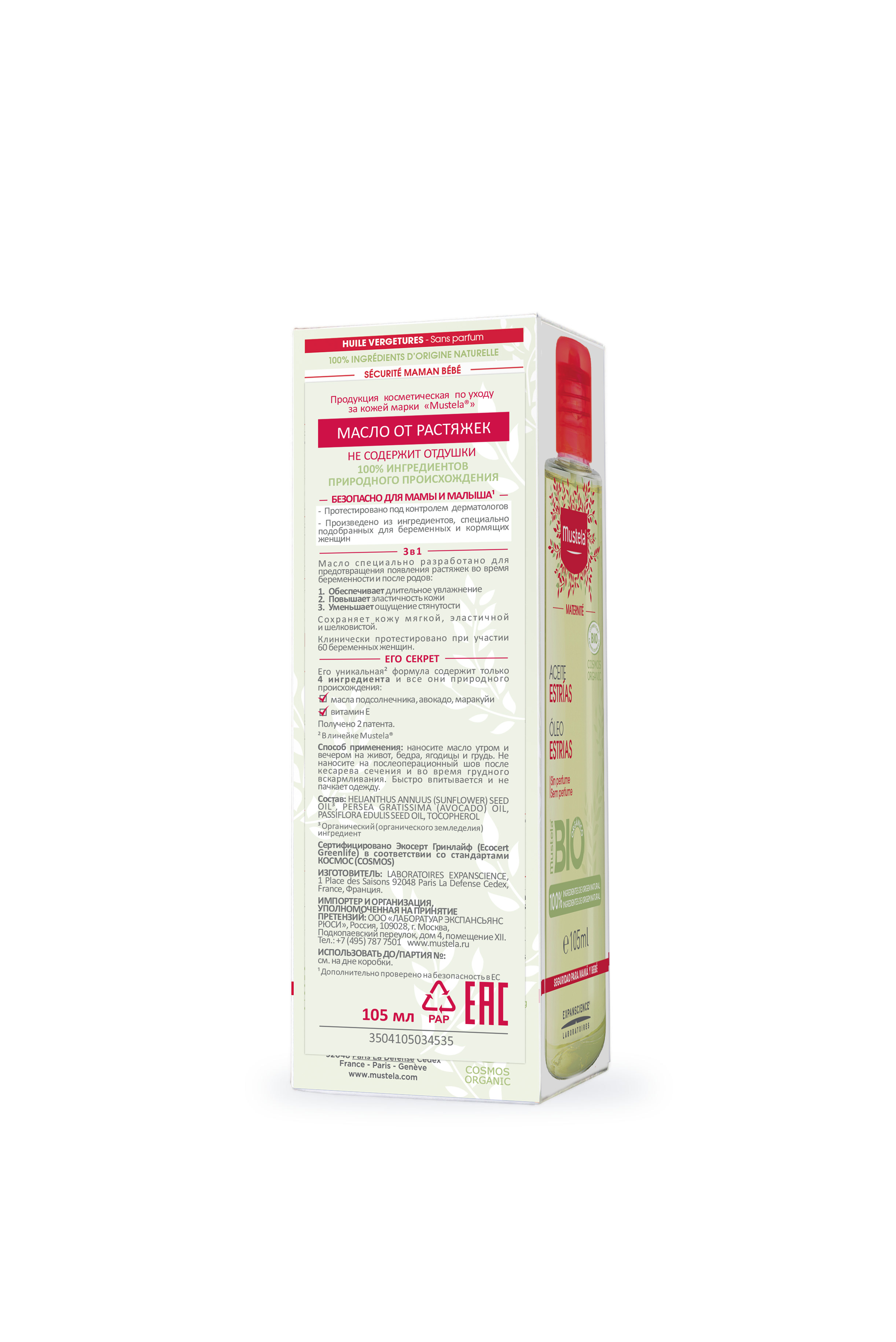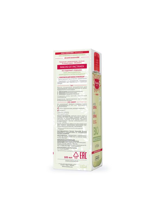 Масло от растяжек разработано специально для того, чтобы предотвратить появление растяжек во время беременности и после родов. Обеспечивает длительное увлажнение кожи, улучшает ее эластичность и уменьшает чувство стянутости, благодаря уникальной* формуле, которая содержит всего 4 ингредиента натурального происхождения: