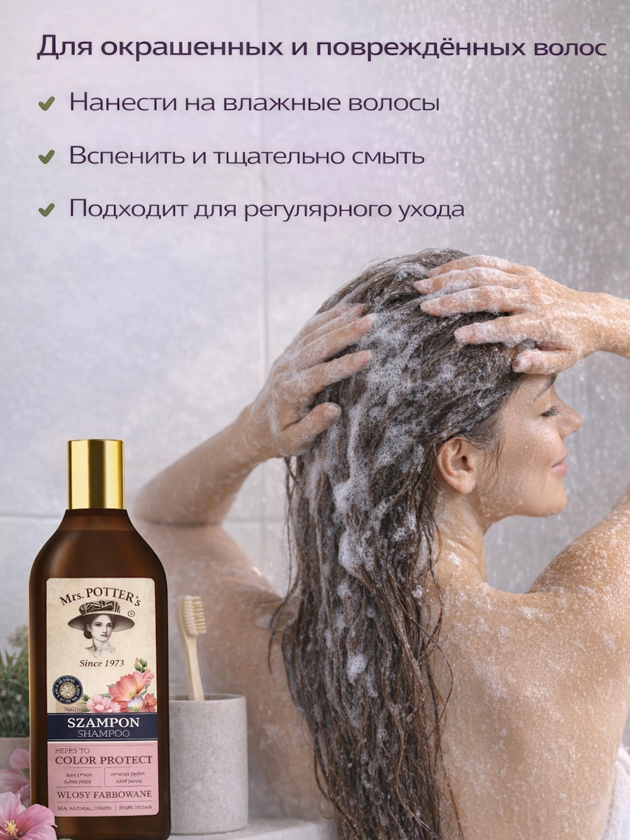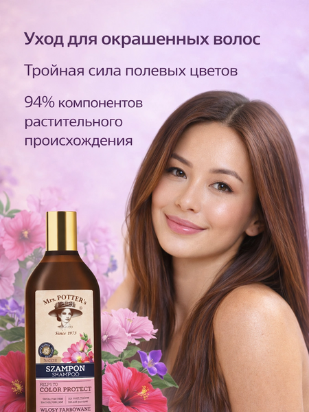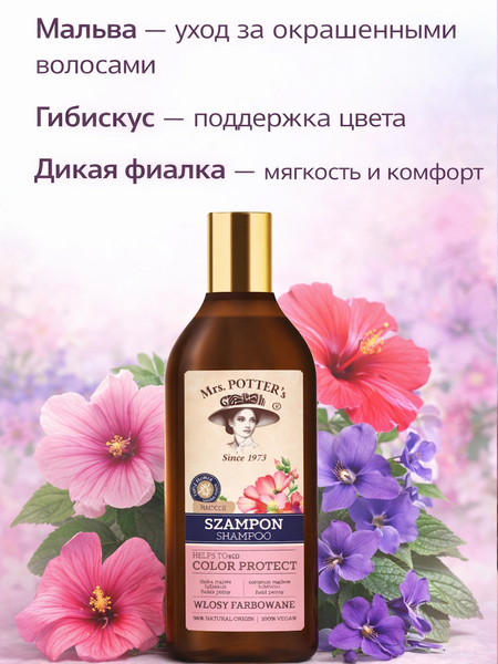 Шампунь тройная сила полевых цветов. Шампунь для окрашенных волос, поврежденных парикмахерскими процедурами. Тройная сила природы исходящая из полевых цветов. Компоненты растительного происхождения: экстракт дикой мальвы, экстракт гибискуса, экстракт дикой фиалки. 94% компонентов растительного происхождения. Веганский продукт. Не содержит SLS и SLES. Формула без силикона. Не содержит искусственных красителей. Указания по применению: Нанести на влажные волосы, вспенить и тщательно прополоскать.