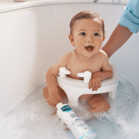 Шаг 4: Промокните кожу малыша полотенцем (не создавая сильного трения) Уделите особое внимание зоне под подгузником и кожным складочкам. Удобная упаковка с помпой сделает процесс купания простым и приятным.