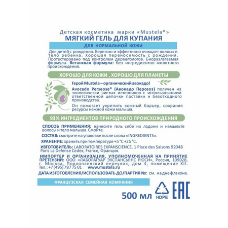 Нежный гель с органически выращенным авокадо защищает и смягчает детскую кожу, компенсируя жесткость водопроводной воды. Данное средство обладает хорошей переносимостью с рождения и подходит для ежедневного использования. Клинически доказанная эффективность, не содержит мыла и не щиплет глаза. Гипоаллергенно: разработано для минимизации риска аллергических реакций. Протестировано под контролем дерматологов и педиатров.