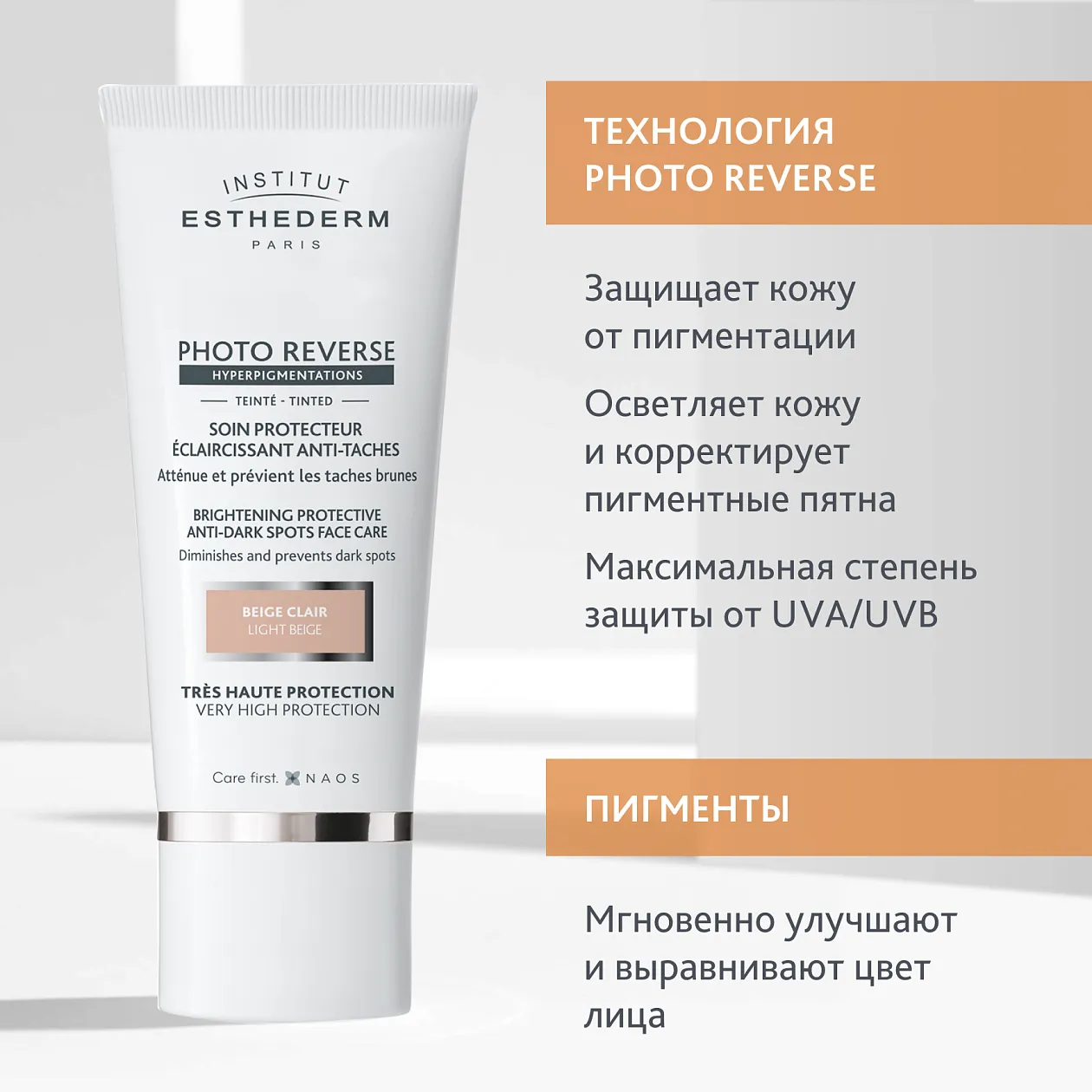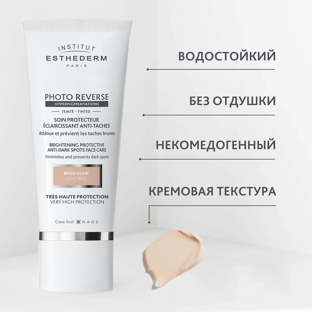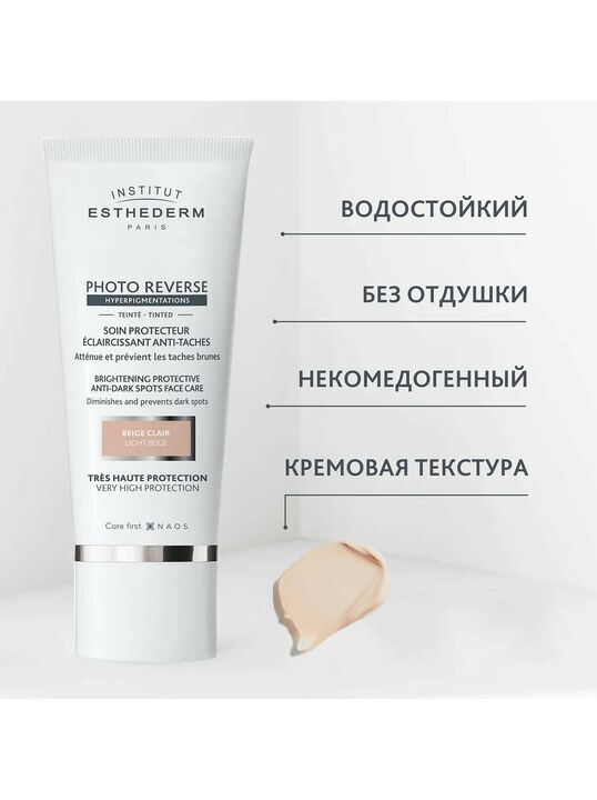 Солнцезащитный крем Institut Esthederm Photo Reverse с максимальной степенью защиты оптимизирует естественный процесс пигментации кожи. Крем осветляет уже имеющуюся пигментацию и предотвращает появление новой, даже при воздействии УФ-лучей. Может использоваться в случае применения фотосенсибилизирующих препаратов или после осветляющих процедур. Оттенок Light Beige подходит для фототипов с 1-4. Идеален для выравнивания цвета лица. Кремовая текстура. Светло-бежевый оттенок.