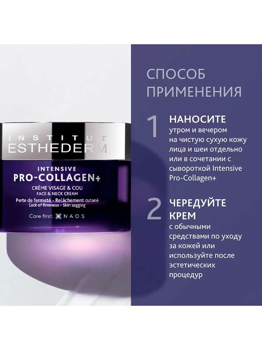 Способ применения и нанесения: Наносите средство утром и вечером на чистую сухую кожу лица и шеи отдельно или в сочетании с сывороткой Intensive Pro-Collagen+. Средства гаммы INTENSIVE следует использовать чередуя с обычными средствами по уходу за кожей или после эстетических процедур.