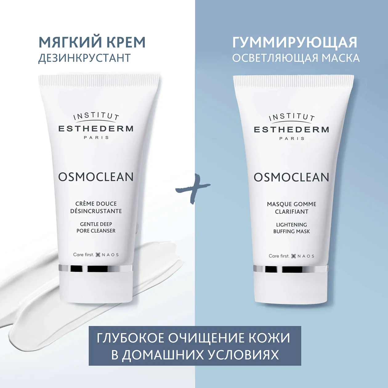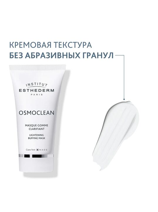 Очищающая и осветляющая гуммирующая маска Institut Esthederm Osmoclean с эластичной текстурой и без повреждающих кожу гранул.