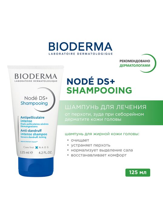Формула шампуня Bioderma Node DS+ не дает распространяться бактериям из-за которых появляется перхоть. Помогает контролировать выработку себума и снимает признаки зуда. Эффективность шампуня Bioderma Node DS+ заметна уже после первого применения при соблюдении условий использования. Нежная, гелевая основа шампуня. Пенится со второго нанесения. Имеет легкую не отталкивающую отдушку. Активные компоненты: Патент DSactiv на биологическом уровне помогает избавиться от перхоти и зуда.
