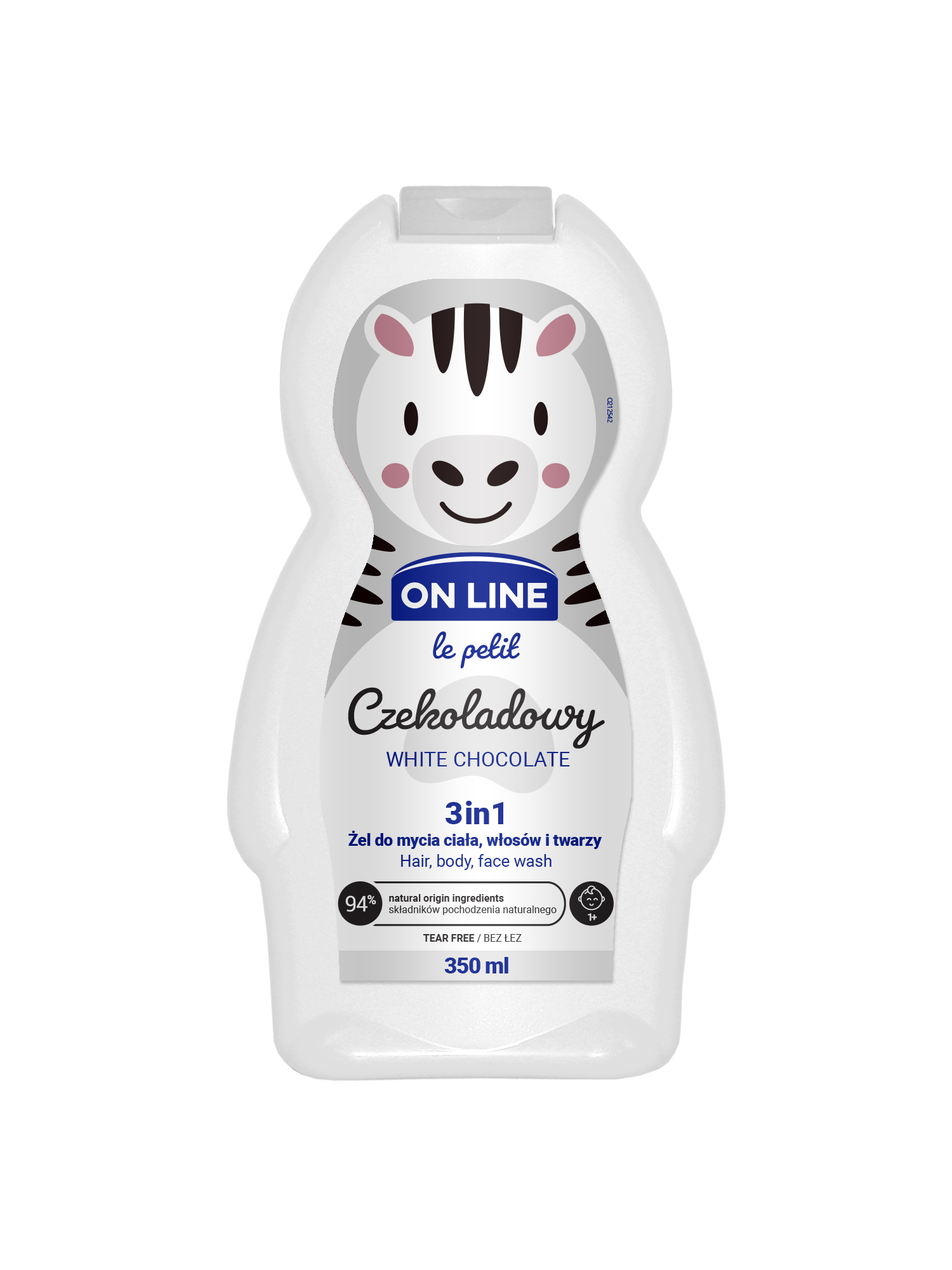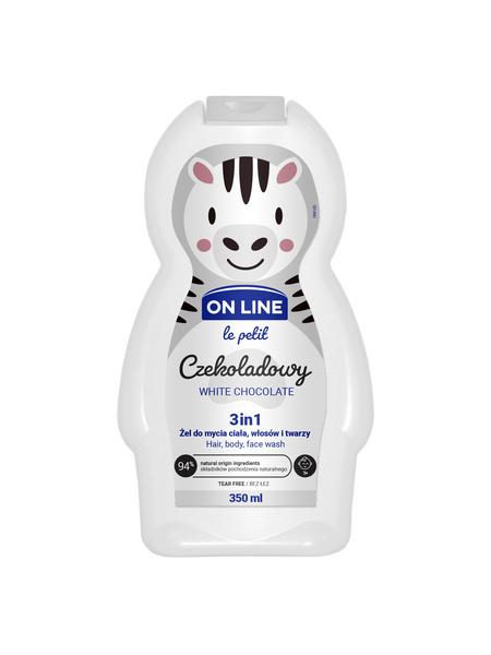 Детский увлажняющий гель 3в1 WHITE CHOCOLATE для волос, тела и лица 350 мл с ароматом белого шоколада. Моет, одновременно ухаживая за волосами, телом и лицом ребенка. Не щиплет глаза, облегчает расчесывание волос после купания и снижает их наэлектризованность. Продукт прошел дерматологические испытания, содержит 94% ингредиентов натурального происхождения. Имеет нейтральный уровень рН. Может применяться с возраста от 1 года. Подходит для чувствительной кожи. Условия храниения: Хранить при температуре от 4 до 25 градусов С в сухом месте.