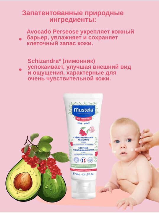 Mustela Успокаивающий Увлажняющий Крем Увлажняющий крем для лица для очень чувствительной кожи