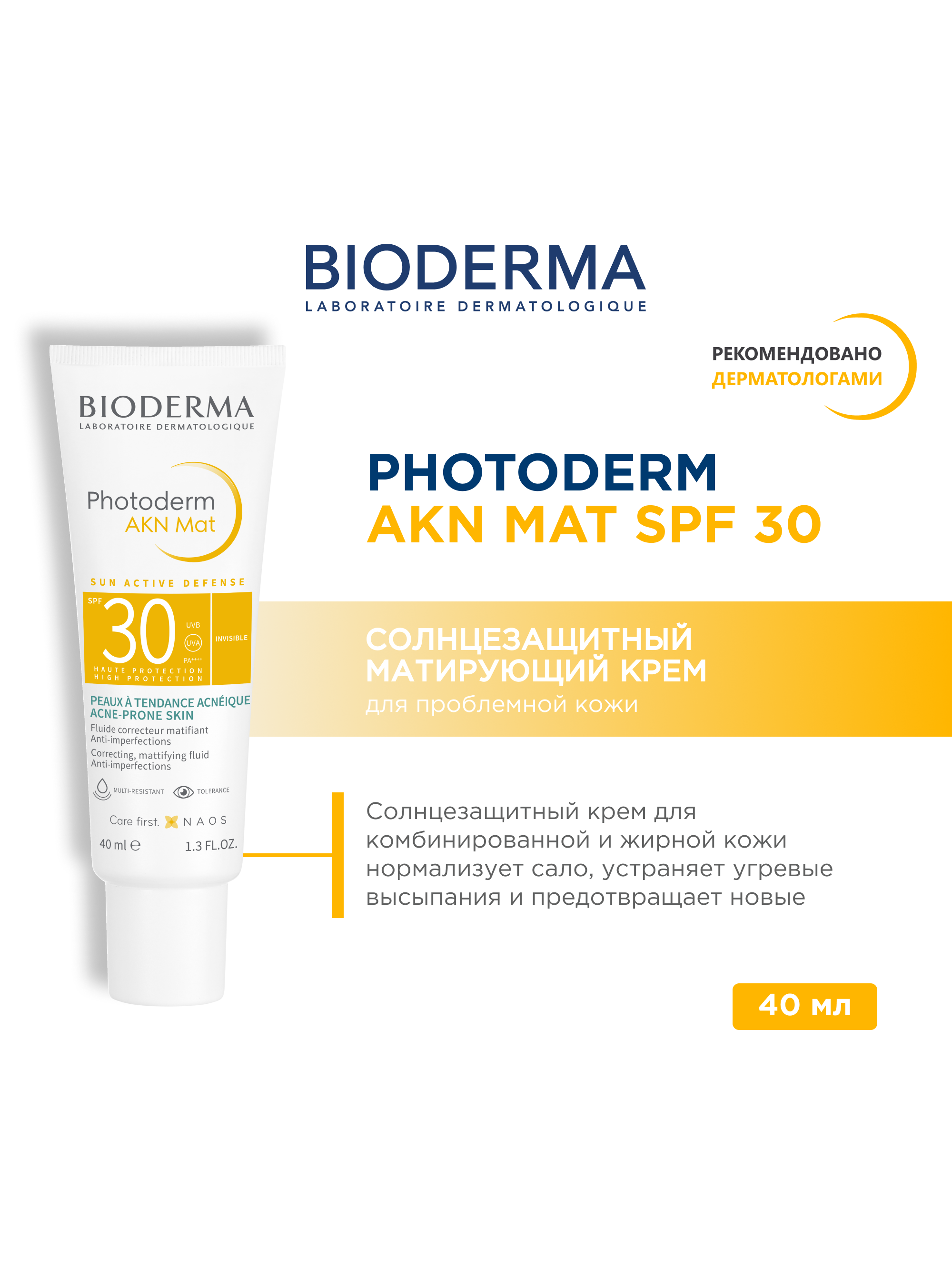 Матирующая эмульсия для комбинированной и жирной кожи, склонной к акне, предотвращает появление воспалительных элементов и обеспечивает продолжительный матирующий эффект. Нелипкая, нежирная текстура, бесцветная при нанесении, не оставляет белых разводов и с приятной отдушкой.Результаты исследований удовлетворенности потребителей после 14 дней применения:94% нежирный финиш на коже;94% незаметная на коже текстура, без липкости.Активные компоненты:патент SUN ACTIVE DEFENSE - комбинация УФ-фильтров и запатентованной биологической защиты, которая повышает способность кожи к самозащите и помогает поддерживать ее здоровье постоянно на солнце.;патент Fluidactiv yнормализует густоту кожного сала, предотвращает закупорку пор;гликолева и салициловая кислоты в качестве кератолитиков, способствуют удалению мертвых клеток и обновлению эпидермиса.водостойкий фотостабильный.