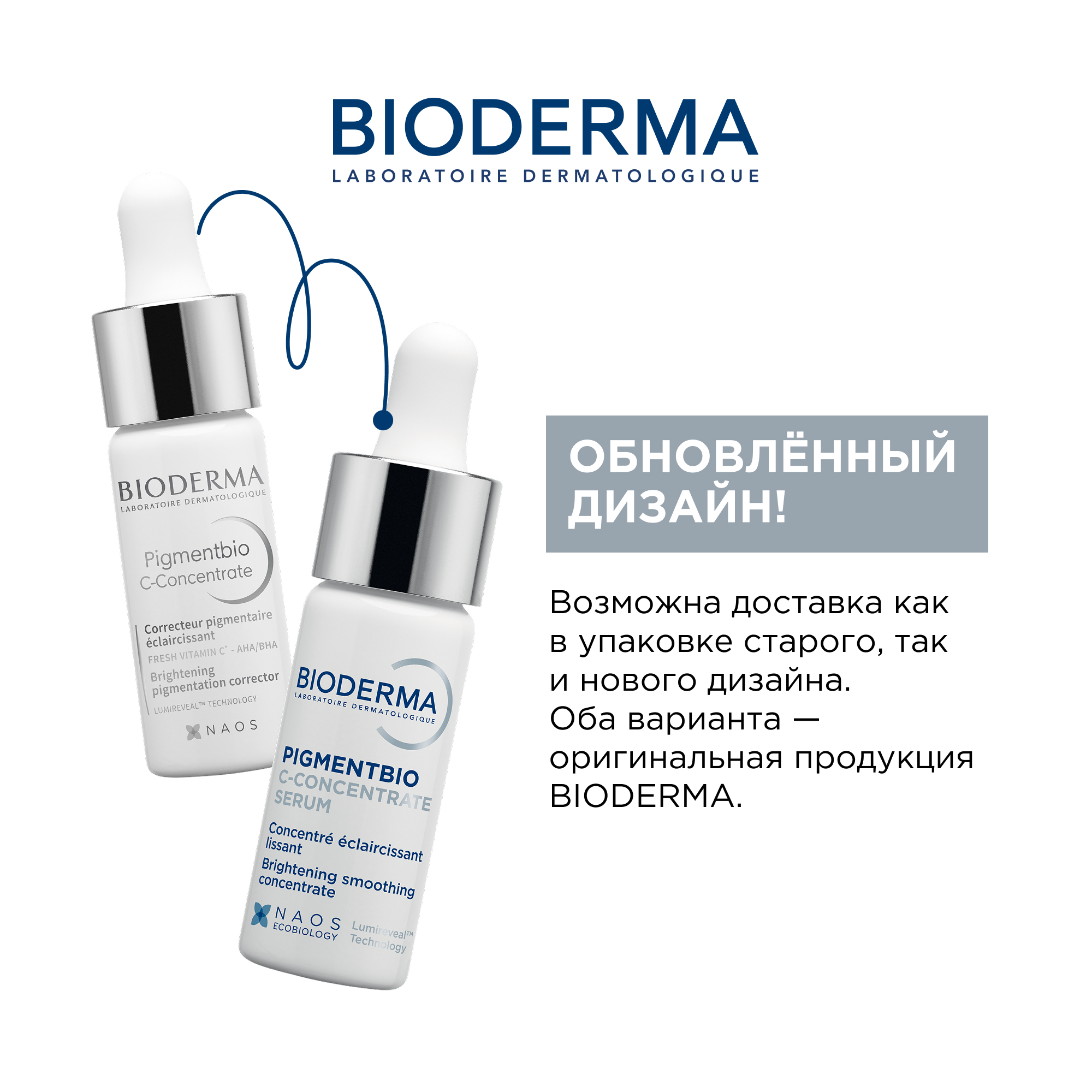 Bioderma Pigmentbio C-Concentrate – высококонцентрированное средство с АНА и ВНА кислотами для коррекции гиперпигментации с мягким отшелушивающим действием, благодаря длительному (до 8 часов) увлажннению. Осветляющее действие Биодерма Пигментбио C-Concentrate сыворотки основано на активности Lumireveal Technology, которая нормализует выработку меланина и улучшает клеточное обновление кожи, что способствует коррекции пигментных пятен и оказывает антирецидивный эффект. По результатам клинических испытаний (в течение 56 дней на 21 добровольце в возрасте от 24 до 48 лет с пигментными пятнами на лице) было отмечено уменьшение размера пигментных пятен на 41%. Средство прошло дерматологический контроль.